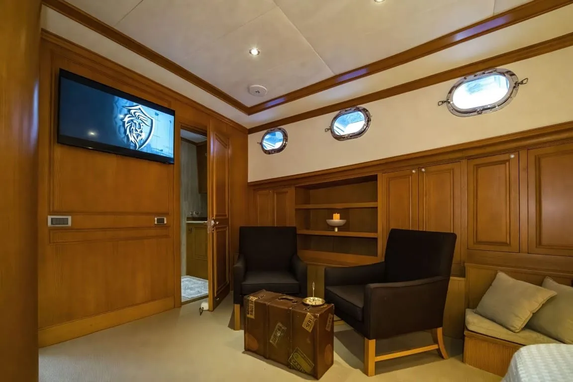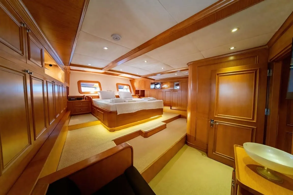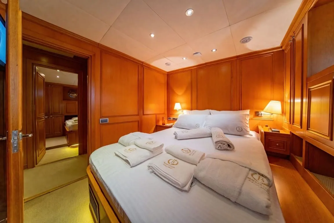 Yatımızda, her biri farklı konfor seviyelerinde dizayn edilmiş toplam 5 kabin yer almaktadır. 1 master, 1 VIP ve 3 double kabin ile 10 kişilik misafir grubunu ağırlama kapasitesine sahip olan Babylon’un tüm kabinlerinde ferah yaşam alanları, geniş yatak ölçüleri, özel banyo, klima ve modern donanımlar mevcuttur. Kabinlerde kullanılan malzemelerin kalitesi ve detaylara verilen özen, guletimizin ayrıcalıklı hizmet anlayışını yansıtmaktadır.