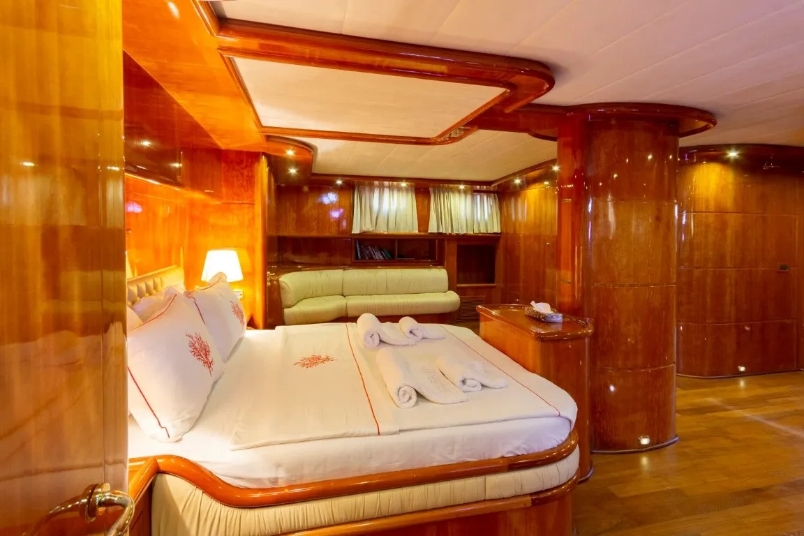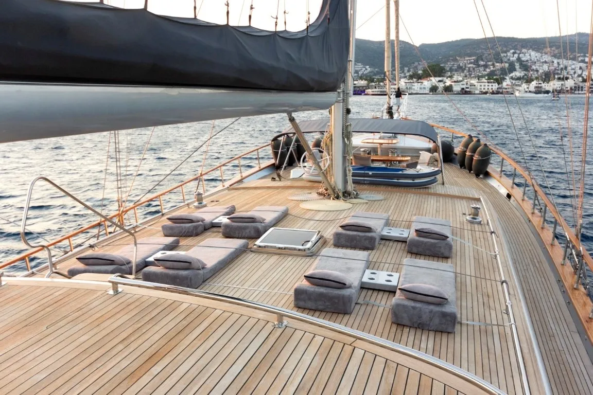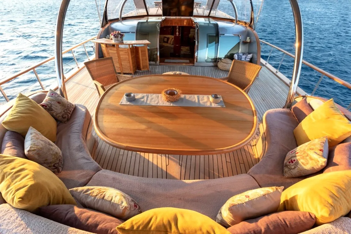 36 metre uzunluğunda ve 7,75 metre genişliğinde olan yatımız, Ege'nin ve Akdeniz'in mavi sularında unutulmaz bir yolculuk deneyimi sunmak için tasarlanmıştır. 5 kişilik profesyonel ve özverili mürettebatımız, misafirlerimize olağanüstü bir hizmet sunmak için her zaman hazırdır.