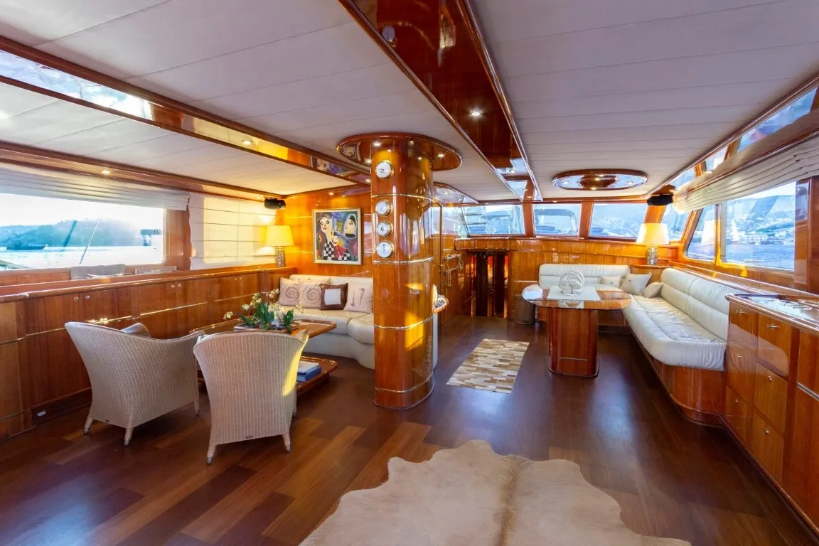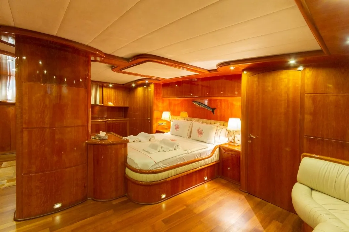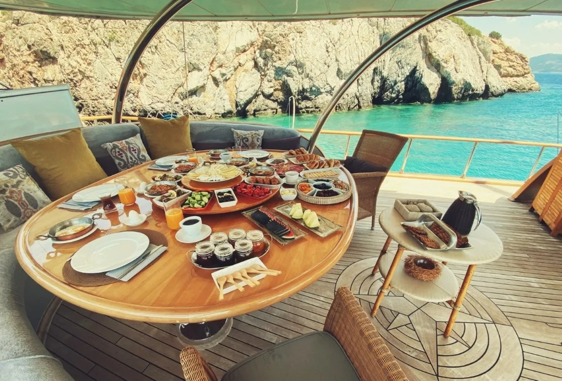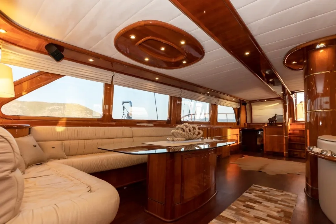 36 metre uzunluğunda ve 7,75 metre genişliğinde olan yatımız, Ege'nin ve Akdeniz'in mavi sularında unutulmaz bir yolculuk deneyimi sunmak için tasarlanmıştır. 5 kişilik profesyonel ve özverili mürettebatımız, misafirlerimize olağanüstü bir hizmet sunmak için her zaman hazırdır.