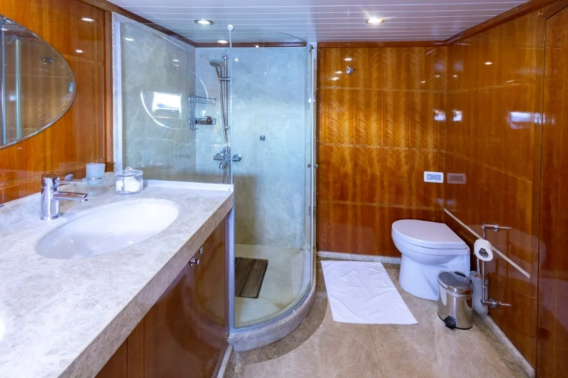 Teknemiz, 2 master, 1 double ve 1 triple kabin olmak üzere toplamda 9 misafire ev sahipliği yapmaktadır. Her kabin, geniş ve konforlu bir banyo, wc ve 24 saat çalışan klima ile donatılmıştır. Yaz sıcaklarında rahat bir konaklama sağlamak için modern iklimlendirme sistemi ve keyifli bir ortam sunulmaktadır. Silver Moon, zarif ve modern tasarımıyla dikkat çekmektedir. Salonda ve güvertede şık oturma grupları, güneşlenme alanları ve yemek masaları, konforlu bir yolculuk deneyimi sunmak için özenle tasarlanmıştır. Misafirler, hem iç mekânda hem de dış alanda konforlu bir yaşam alanı bulacaklardır.