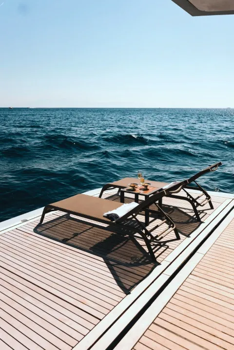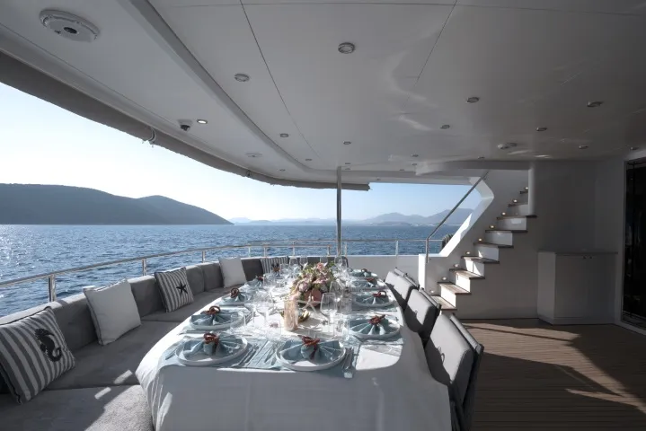 Oturma Grubu, Güneşlenme Minderleri, Yemek Masası, Bar, Jakuzi, Dümen