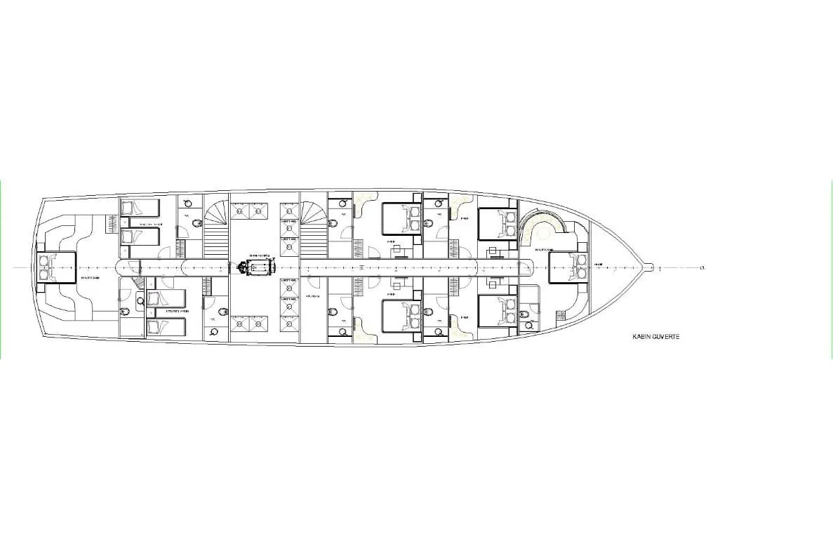 | Kabin Dağılımları | 2 Master, 4 Double, 2 Twin |