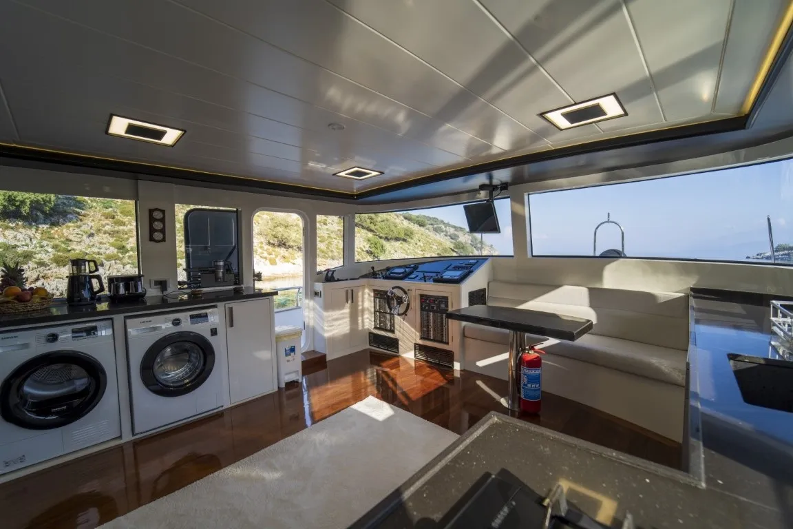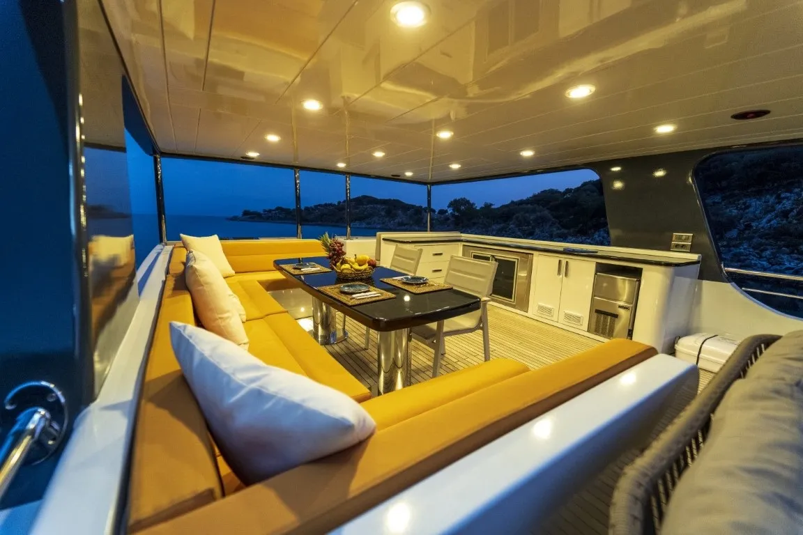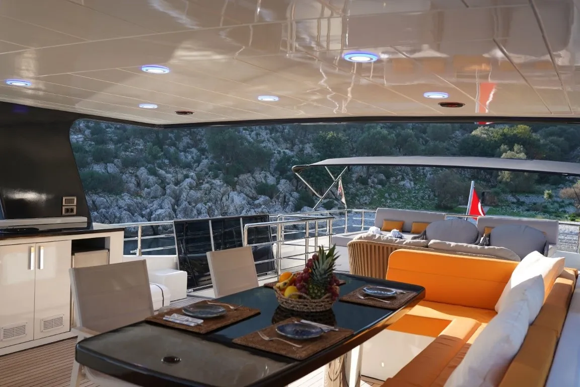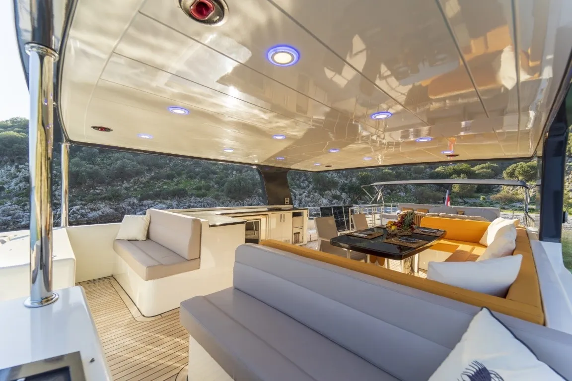 Oturma Grubu, Güneşlenme Minderleri, Yemek Masası, Bar, Dümen, Açılır Kapanır Tente