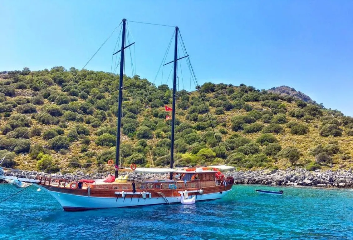 Saat 10:00'da Fethiye Limanı'nda kabin kiralama misafirlerimizle buluşarak teknemize yerleşiyoruz. Kaptanımız tur programı hakkında bilgilendirme yaptıktan sonra, mavi yolculuğumuz başlıyor.