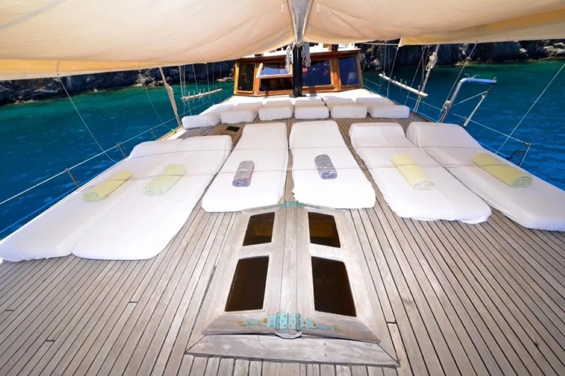 Daha sonra, huzurlu atmosferiyle bilinen Liman Ağzı veya Firnaz Koyu’na doğru yola çıkıyoruz. Burada denizin tadını çıkardıktan sonra akşam yemeğimizi teknede alıyor ve geceyi burada geçiriyoruz.