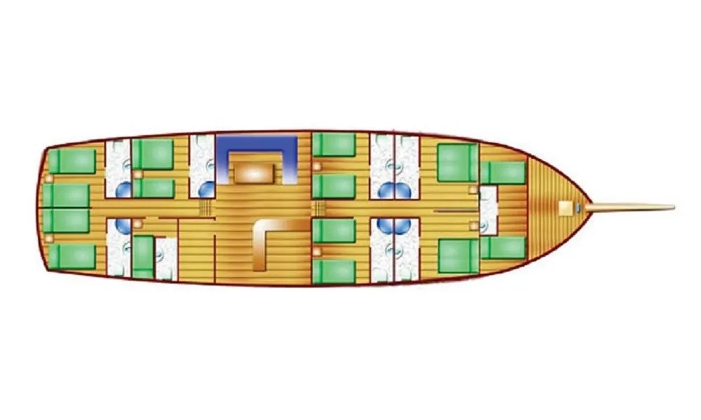 | Kabin Dağılımları | 2 Double, 3 Triple, 2 Twin |