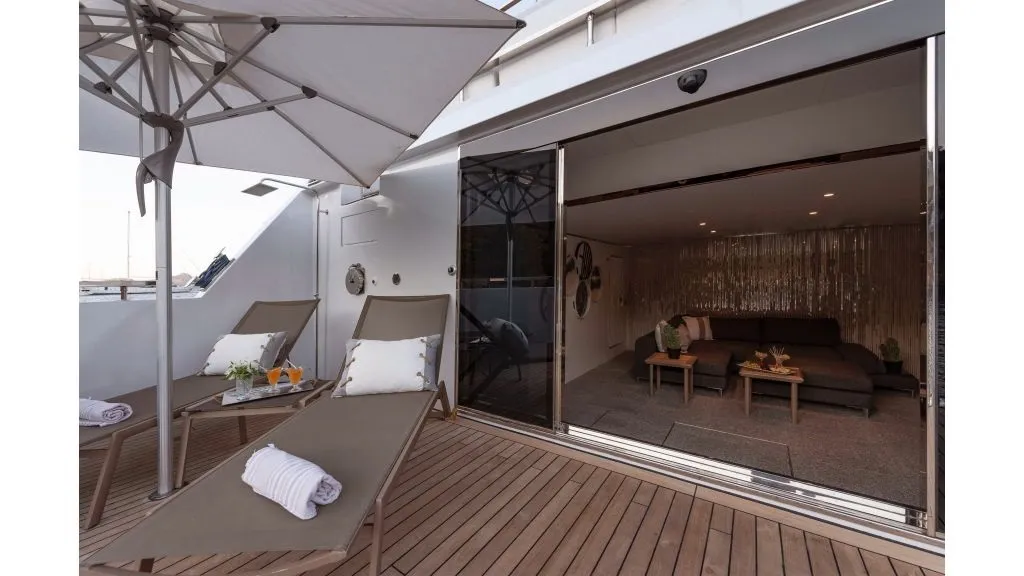 Oturma Grubu, Güneşlenme Minderleri, Yemek Masası, Bar, Jakuzi, Dümen, Açılır Kapanır Tente