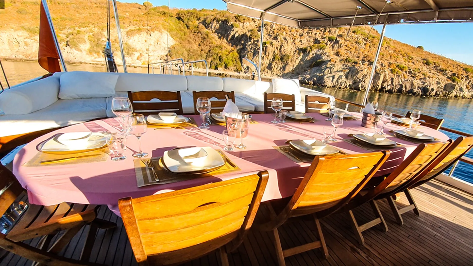 Akşam yemekleri haftalık programa göre planlanır; bir akşam balık, bir akşam tavuk servisi yapılır. Ana yemekler pilav, bulgur, makarna veya patates gibi yan seçeneklerle tamamlanır. 3–4 çeşit meze, taze salata ve meyve ya da tatlı ile sunulan akşam sofraları, gulet tatilini denizde geçen keyifli bir akşam ritüeline dönüştürür.
