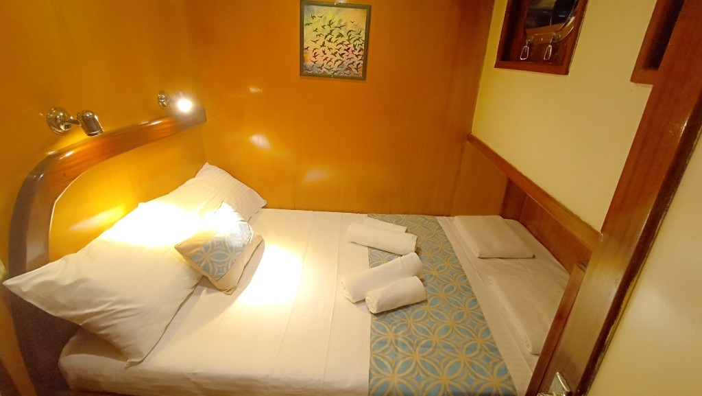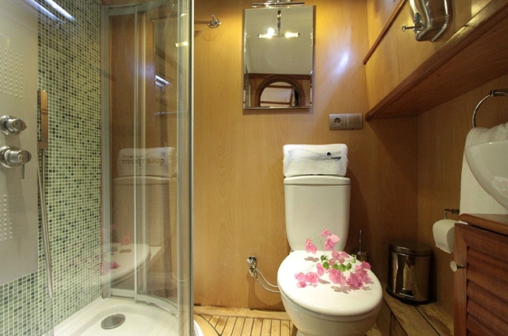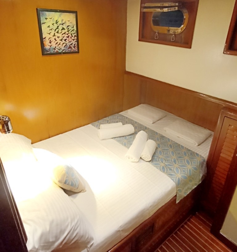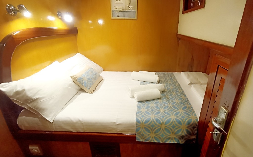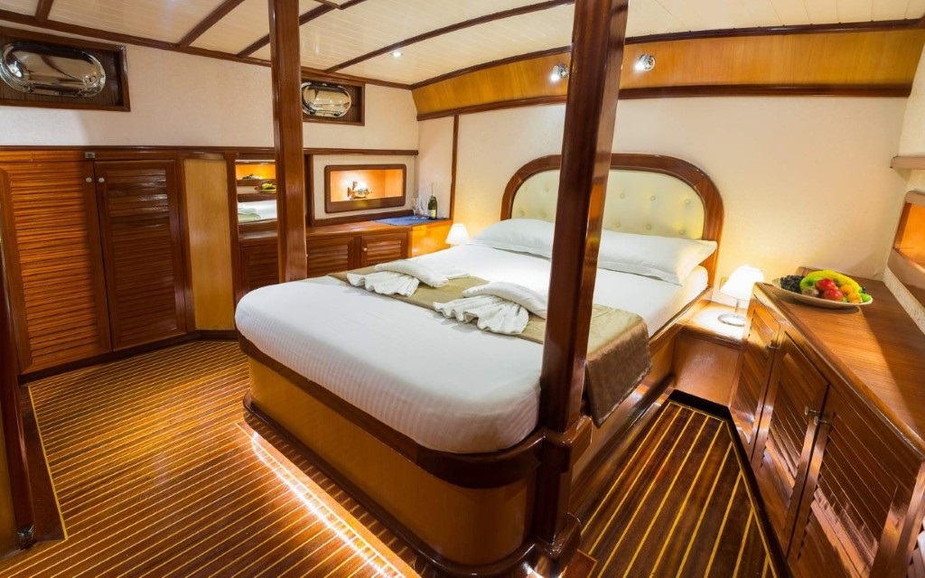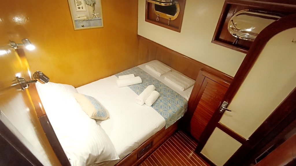 Toplam 3 kabinden oluşan teknemiz, 1 master ve 2 double kabiniyle 6 kişilik gruplara hizmet veren ideal bir 3 kabinli mürettebatlı tekne seçeneğidir. Kabinlerin her biri konforlu ve işlevsel şekilde düzenlenmiş olup, yaz aylarında klima kullanımıyla serin bir konaklama imkânı sunar.