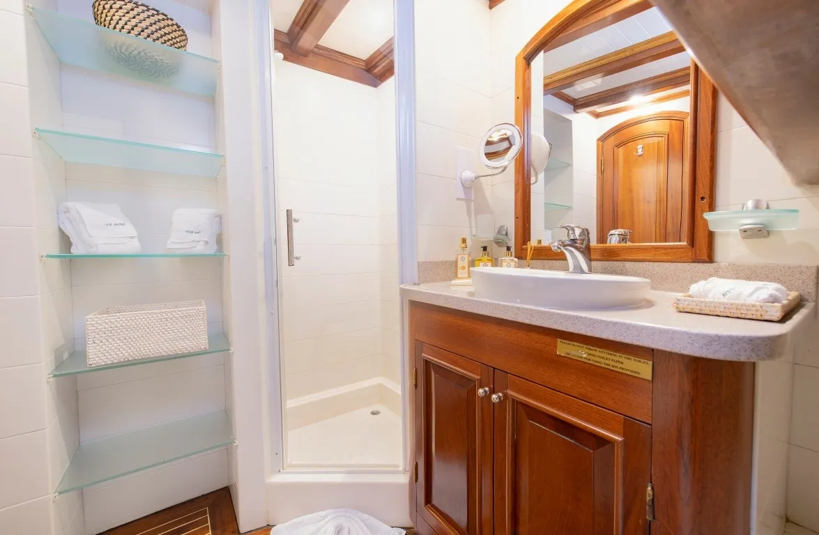 Ecce Navigo, Yunan Adaları mavi yolculuk deneyimini bir üst seviyeye taşıyan, zarafeti ve konforu ile öne çıkan delüks guletlerden biridir. 1997 yılında denize indirilen teknemiz, 2023 yılında kapsamlı bir yenileme sürecinden geçerek bugünkü modern ve göz alıcı görünümüne kavuşmuştur.