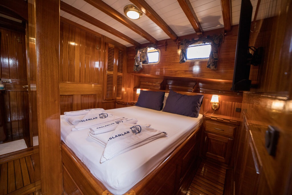 Toplamda 3 kabinli tekne olan Arslan 3’te 1 master, 1 double ve 1 twin kabin yer almakta olup, her kabinde ev tipi wc, duşakabinli banyo ve klima bulunmaktadır. Klima kullanımı gün içinde 4-6 saat arasında sağlanmaktadır.