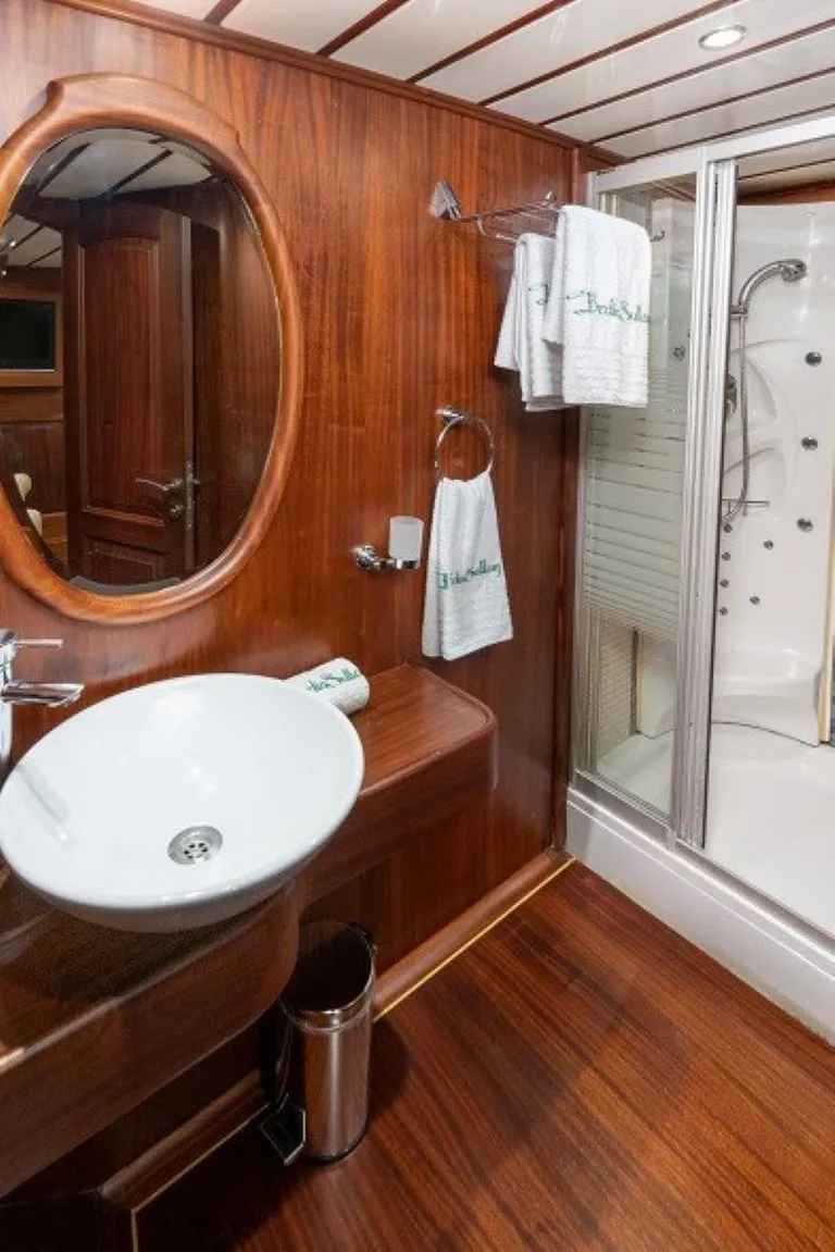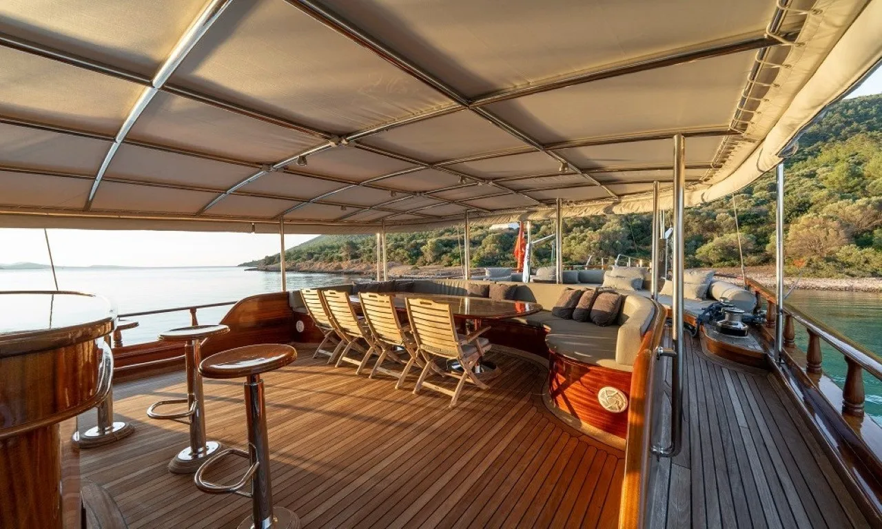 Bedia Sultan’ın salonu ve arka güvertesindeki oturma alanları, yemek ve eğlence anlarınıza keyif katarken, teknede yer alan yüksek ses kalitesine sahip müzik sistemi, televizyon, film oynatıcı ve kablosuz internet bağlantısı gibi donanımlarla günün her saatini dolu dolu yaşayabilirsiniz. Ön güvertedeki güneşlenme alanları ve oturma grubu ise denizin huzurunu hissetmek isteyen misafirler için ideal ortamı sunar.