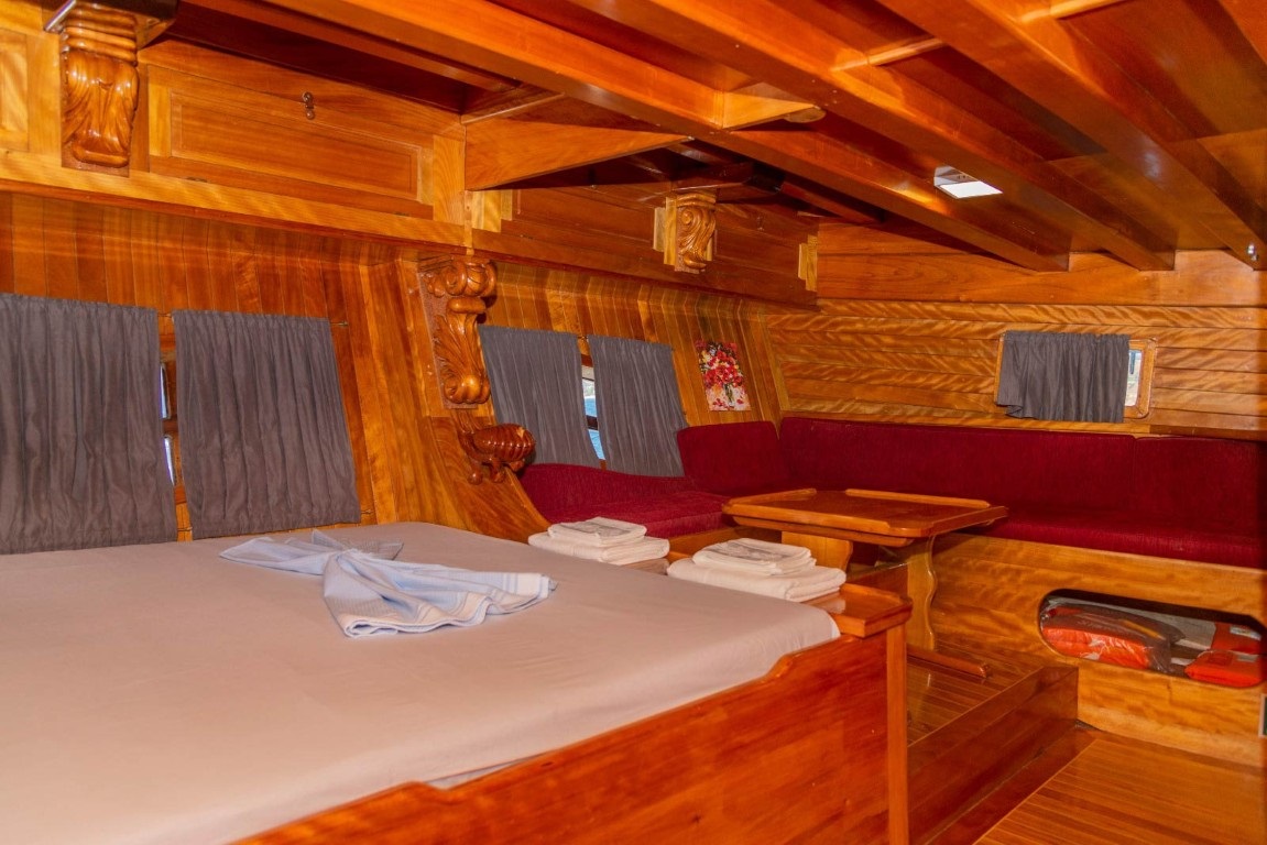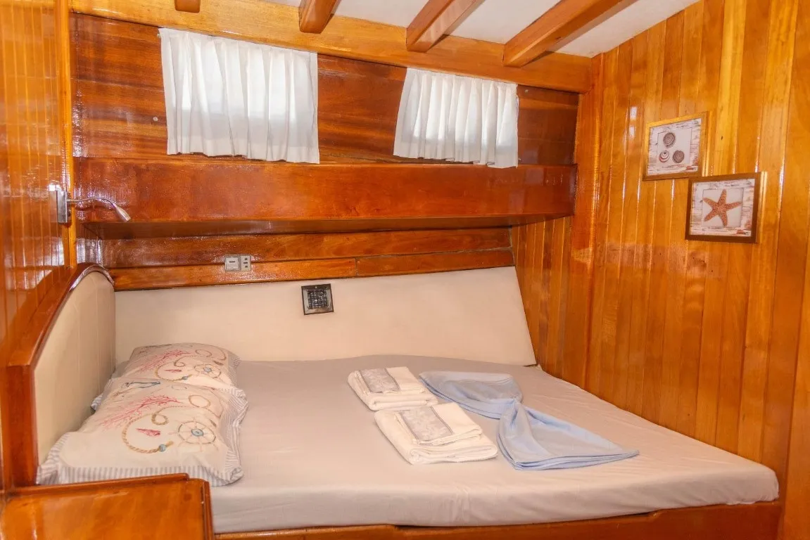 Bodrum Limanı’na kayıtlı Deniz Kızı A guletimiz, 25 metre uzunluğu ve 6.7 metre genişliğiyle, 1998 yılında inşa edilmiş olup, 2020 yılında yapılan modern yenileme ile günümüzdeki eşsiz halini almıştır. Lüks gulet kategorisinde yer alan teknemiz, 6 geniş ve ferah kabine sahiptir. 1 master, 3 double ve 2 twin kabin ile toplamda 12 misafir ağırlayabilen Deniz Kızı A, her kabinde duş, wc ve klima gibi konforlu olanaklar sunarak, misafirlerinin rahatını ön planda tutar.