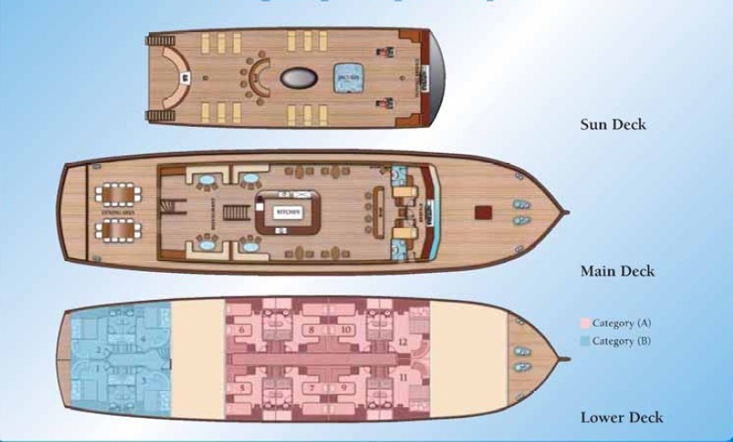 | Kabin Dağılımları | 6 Double, 6 Twin |