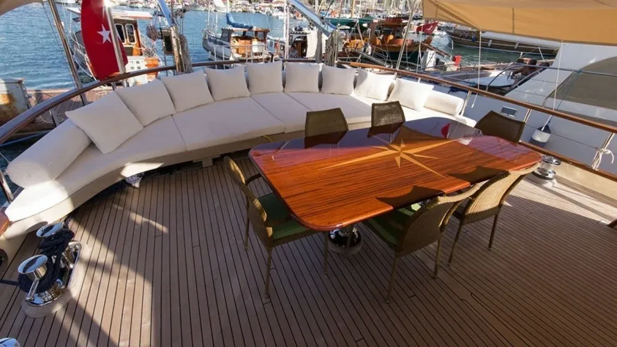 Mavi sularda seyrederken, tam donanımlı mutfağımızda hazırlanan Ege ve Akdeniz mutfağının seçkin lezzetlerini tadabilir, güneşlenme alanlarımızda dinlenebilir, denize girerek serinleyebilir ve su sporları ile tatilinizi daha eğlenceli hale getirebilirsiniz.