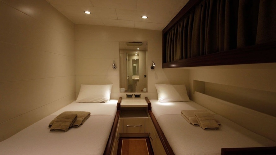 Gulet Endless, deneyimli 3 kişilik mürettebatı ile hizmet vermektedir. Toplamda 8 kişilik kapasitesi olan guletimizde, şık ve konforlu 2 double ve 2 twin kabin yer almaktadır. Her kabinde kendine ait duş, WC ve klima bulunmaktadır. Beyaz ve ahşabın uyumu ile tasarlanan geniş ve ferah iç alanlar sayesinde, deniz üzerinde konfor ve lüksü bir arada yaşayabilirsiniz.