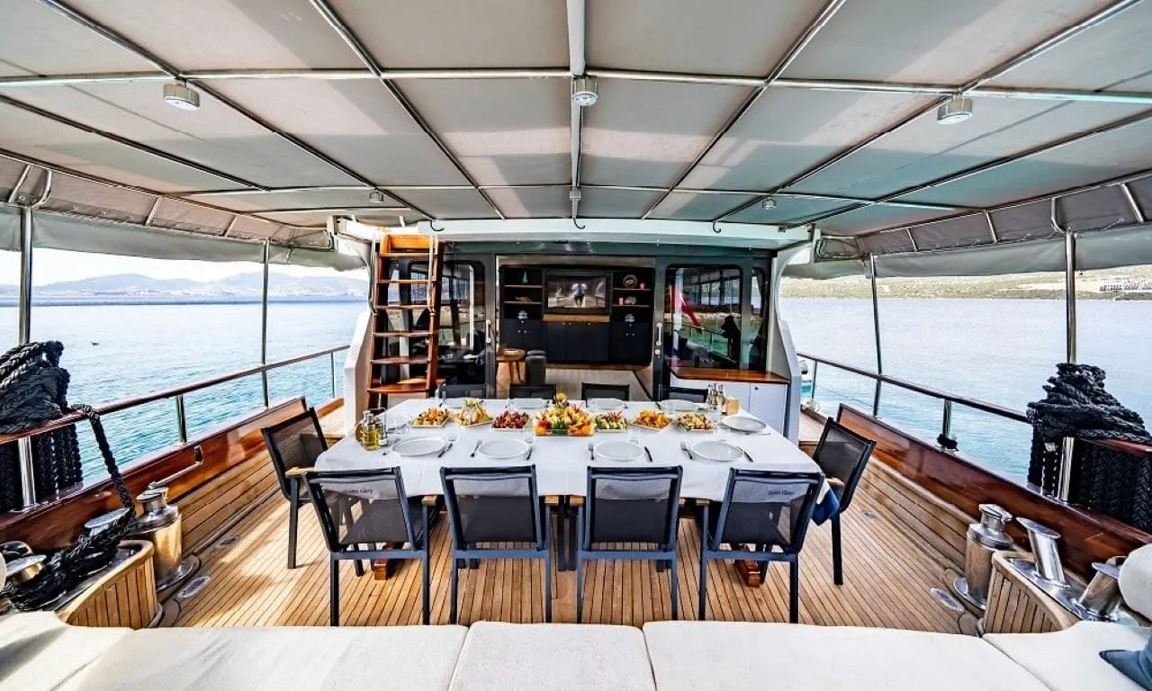 Teknemizde, her biri alanında deneyimli 4 kişilik mürettebat, tatiliniz boyunca seyir, servis, yemek, temizlik ve günlük aktivitelerin organizasyonu için siz değerli misafirlerimize hizmet vermektedir. Golden Glory ile Bodrum’un ve Ege’nin eşsiz koylarını keşfederken, konforun ve lüksün keyfini çıkarabilirsiniz.