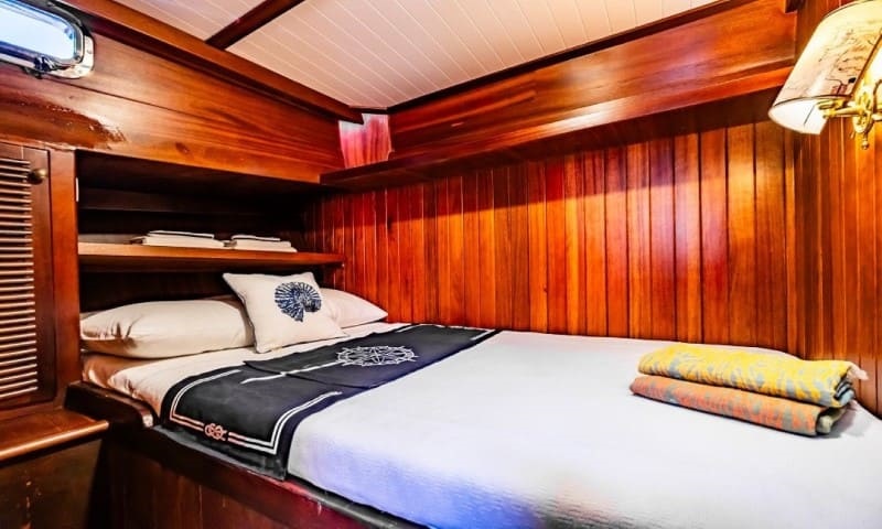 Toplamda 4 kabini bulunan teknede 1 master ve 3 double kabin yer almaktadır. Golden Joy gulet, maksimum 8 kişilik konaklama kapasitesine sahiptir. Teknemizde günlük 4-6 saat klima kullanım imkânı bulunmaktadır. Mürettebat kadrosu 1 kaptan, 1 aşçı ve 1 gemiciden oluşur. Deneyimli ekip, misafirlerin tüm ihtiyaçlarıyla ilgilenerek keyifli ve güvenli bir seyahat sunmaktadır.