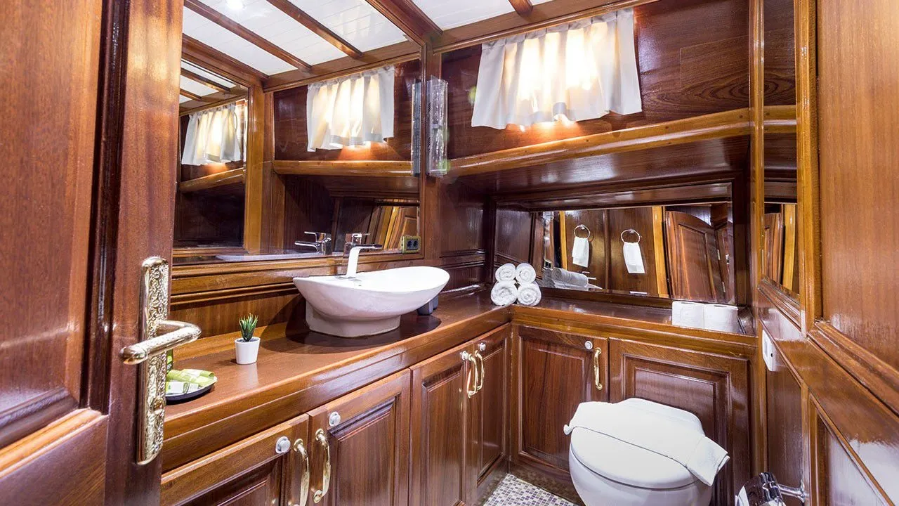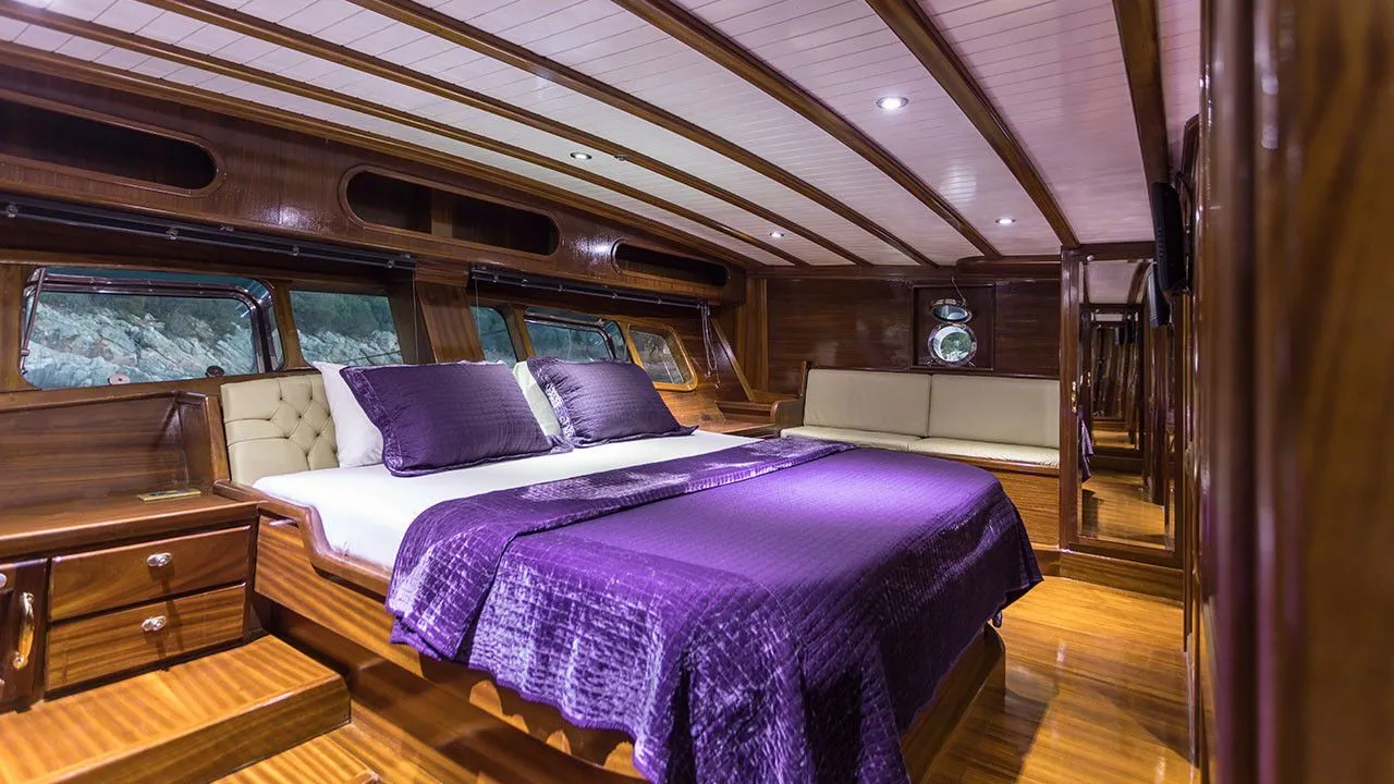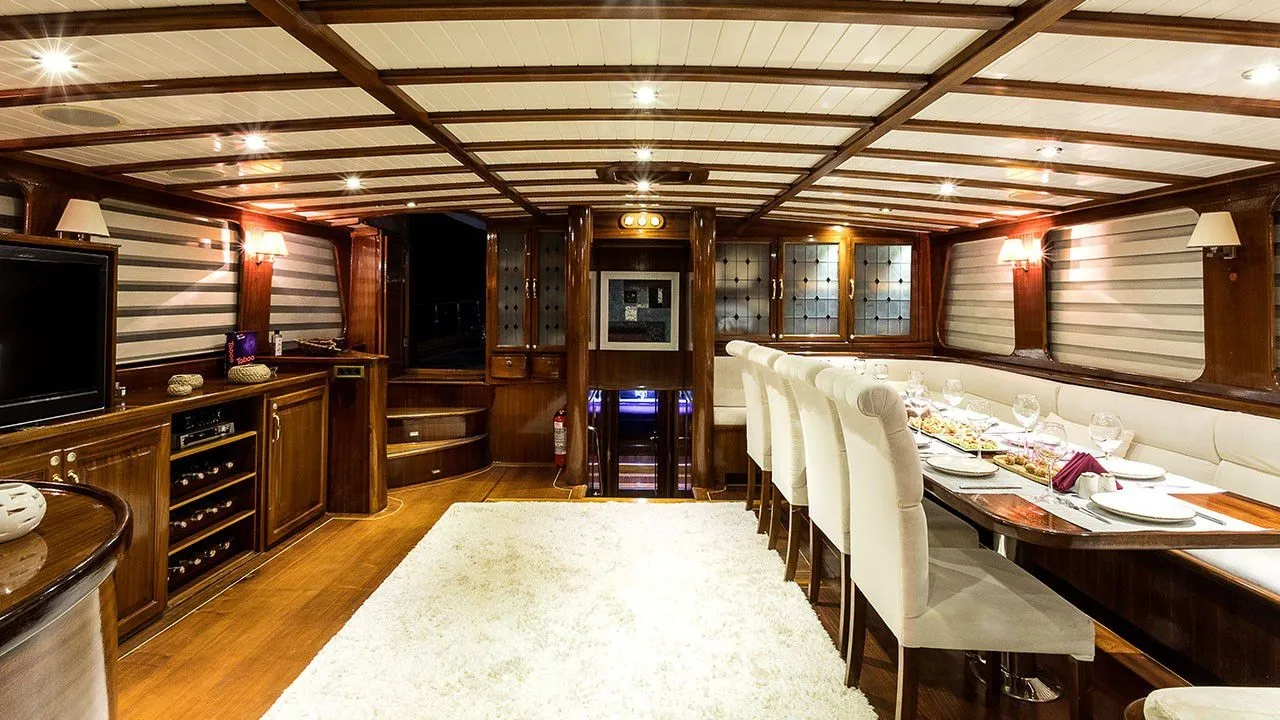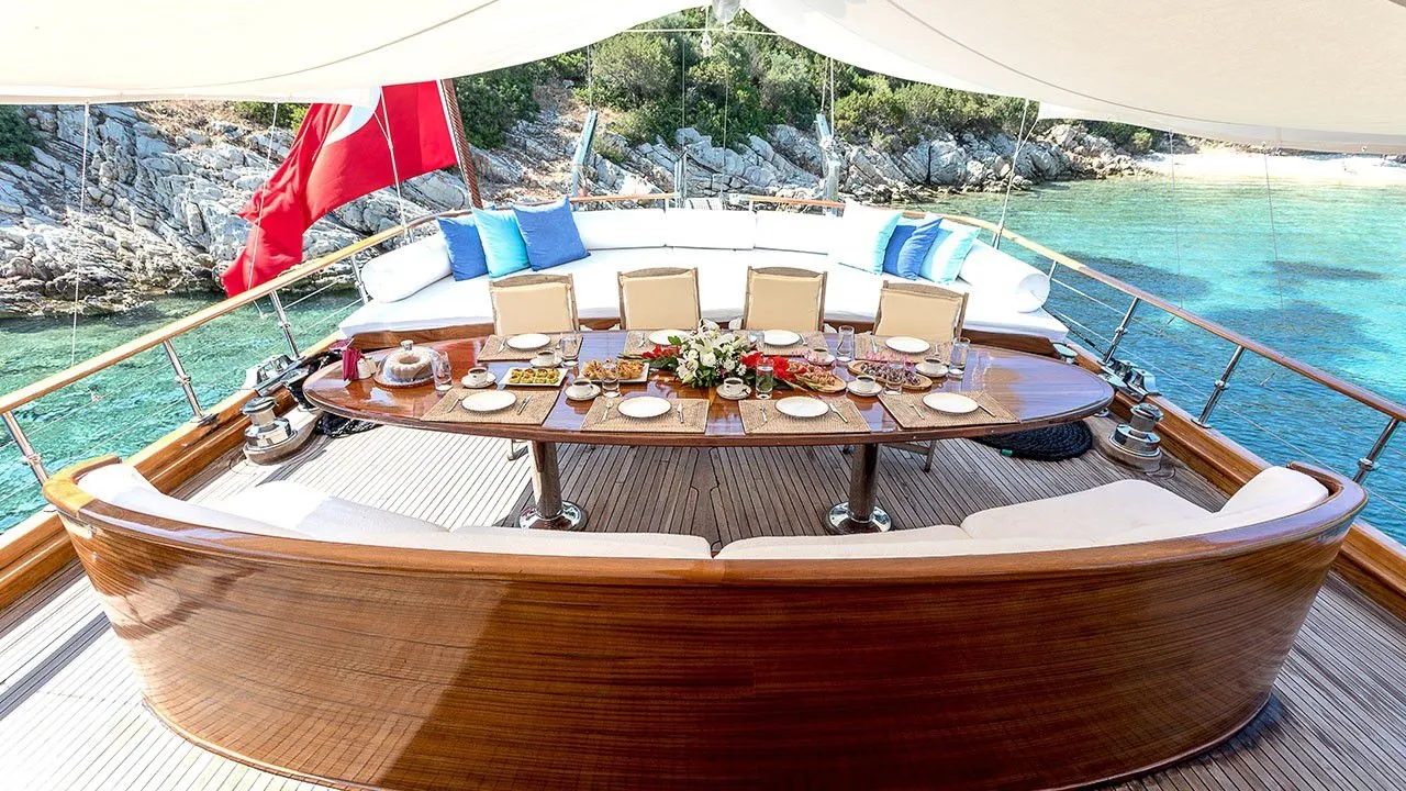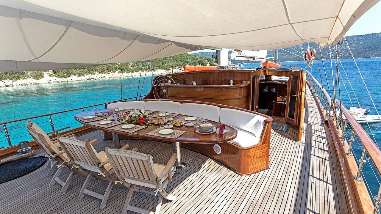 Teknemiz, rahatlık ve şıklık düşünülerek dizayn edilmiştir. Ana güverte, dinlenmek ve keyifli vakit geçirmek için mükemmel bir alan sunarken, ön güvertede birbirine bakan 2 hilal şeklinde el yapımı oturma alanı, arka güvertede ise yemek yeme alanı bulunmaktadır. Yelken seyirleri ve mavi yolculuk sırasında unutulmaz anılar biriktirebileceğiniz bu lüks gulette, bir çok su oyuncağı da misafirlerimizin eğlencesine sunulmaktadır. Paddle board, kano, jet ski gibi su sporlarıyla teknede vakit geçirmek, her misafire farklı bir keyif deneyimi yaşatır.