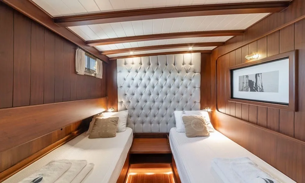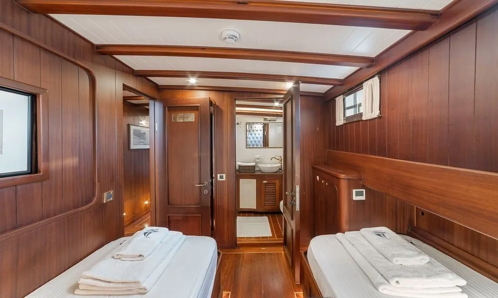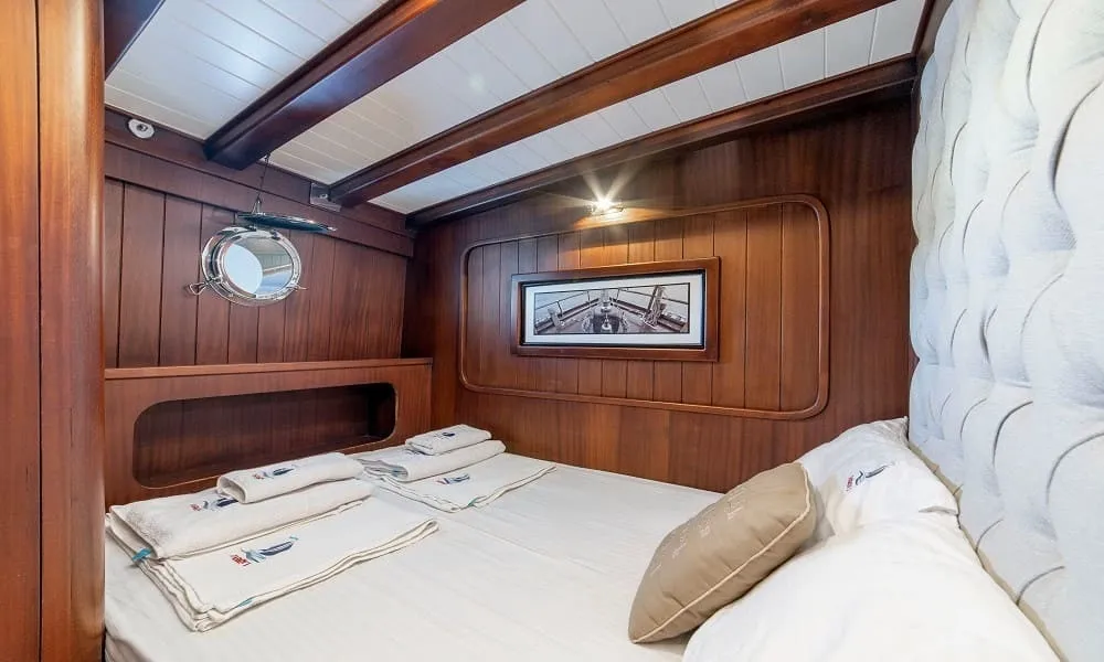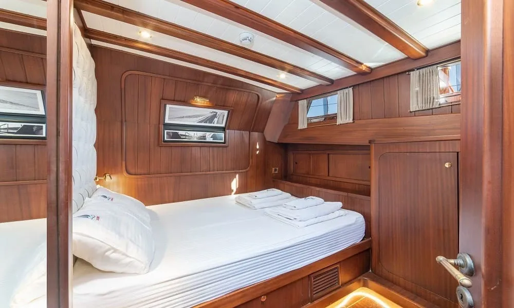 Teknede 1 master, 3 double ve 2 twin kabin bulunmakta olup, toplamda 12 kişiye kadar konaklama imkanı sağlar. Aile ve arkadaş grupları için ideal olan Jasmin 1, Bodrum ve çevresindeki koyları keşfetmek isteyenler için mükemmel bir tercihtir.