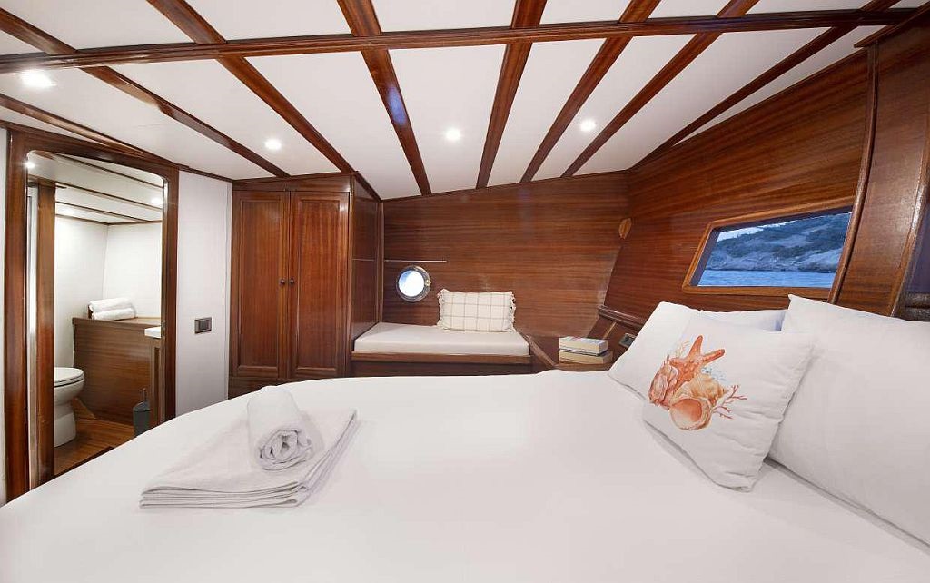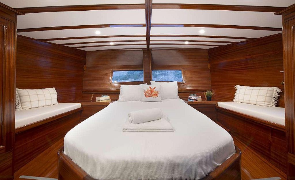 Ketch tipi guletimiz, 18 metre uzunluğa ve 5.30 metre genişliğe sahiptir. 2 Master ve 2 Double olmak üzere toplam 4 kabini bulunan teknemiz, 8 kişilik aile ve arkadaş grupları için uygundur. Tüm kabinlerde özel duş, tuvalet ve saç kurutma makinesi mevcuttur.