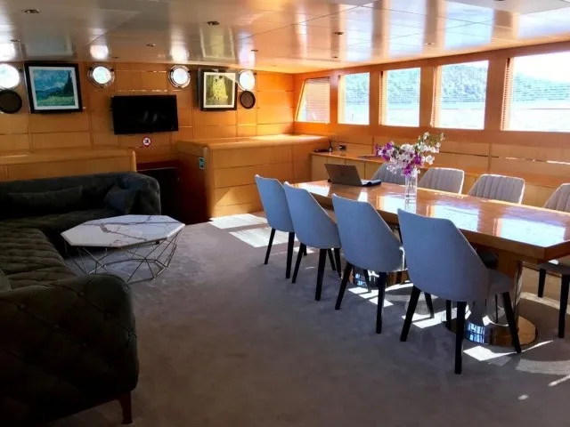 Geniş güvertesi, şık tasarlanmış açık ve kapalı yemek alanları, tam donanımlı mutfağı ve klimalı salonu ile hem dinlenmek hem de sosyalleşmek için ideal ortamı sunar.