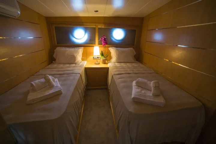 2 master, 3 double ve 1 twin olmak üzere toplam 5 kabin ile 12 kişiye kadar olan misafir gruplarını rahatlıkla ağırlayabilen Let’s Dance, her kabininde özel banyo, klima, tv, dvd oynatıcı ve müzik sistemi gibi olanaklarla adeta deniz üstünde bir butik otel deneyimi yaşatır.