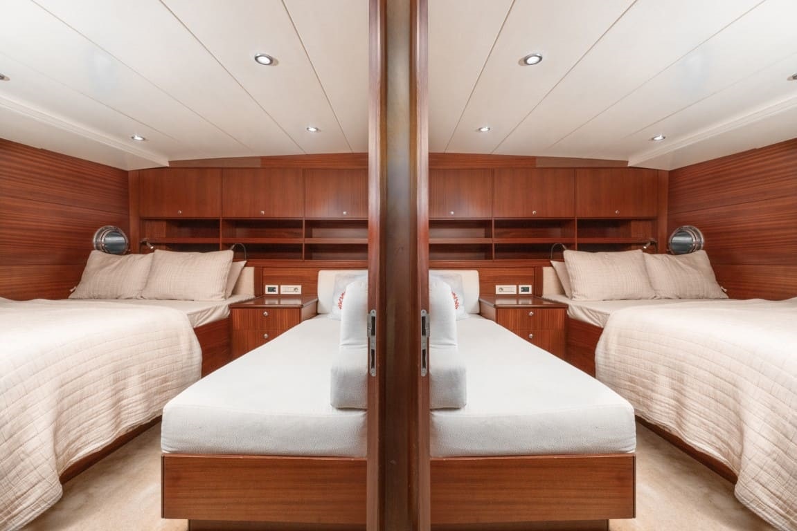 Lucky You isimli kiralık lüks guletimiz 2012 yılında Bodrum’da inşa edilerek denize indirilmiştir. Bodrum Limanı çıkışlı tekne kiralama hizmeti sunan guletimiz, 37 metre uzunluğu ve 7,4 metre genişliği ile mavi yolculuk severlere geniş, konforlu ve lüks bir yaşam alanı sunmaktadır. Gulet kiralama sektöründe misafir memnuniyetiyle ön plana çıkan teknemiz, kaliteli hizmet anlayışı ve ferah alanlarıyla lüks tekne tatili arayanlar için ideal bir tercihtir. Lucky You guletimiz 1 master, 2 VIP ve 2 double kabinden oluşmakta olup toplamda 10 kişiye kadar olan özel misafir gruplarına Bodrum çıkışlı mavi tur hizmeti vermektedir. Her kabin özenle tasarlanmış, zemini halı kaplı, her birinde duşakabinli özel banyo, ev tipi wc, klima, banyo havluları ve el havluları ile donatılmıştır. Tüm kabinlerde konfor ve rahatlık ön planda tutulmuş, lüks detaylarla bütünleşmiş bir atmosfer oluşturulmuştur. Lüks yat kiralama alanında profesyonelliği ile bilinen Lucky You, 4 kişilik deneyimli mürettebatıyla sizlere kişiye özel ve kaliteli bir hizmet sunar. Mavi yolculuk boyunca konforunuz ve memnuniyetiniz öncelikli tutulur. Bodrum gulet kiralama kategorisinde ön plana çıkan Lucky You ile Akdeniz’in eşsiz koylarında unutulmaz bir tatil deneyimi yaşayabilirsiniz. Eğer siz de Bodrum çıkışlı gulet kiralama fırsatları arıyorsanız, maviyolculuk.org satış temsilcimizle iletişime geçerek Lucky You teknesi için avantajlı fiyat tekliflerinden faydalanabilirsiniz. Lüks gulet deneyimi, konforlu yaşam alanları, özel kabinleri ve yüksek kaliteli hizmet anlayışı ile Lucky You sizlere hayalinizdeki mavi tur tatilini sunmak için hazır bekliyor.