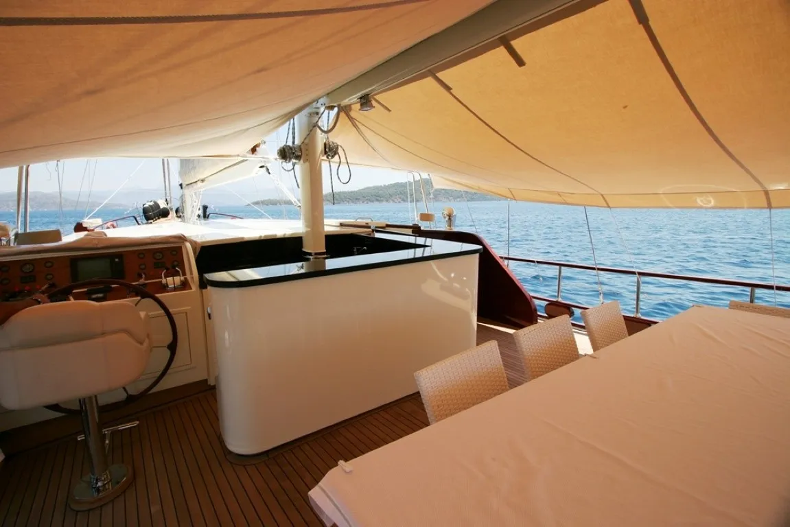 30 metre uzunluğunda ve 7,2 metre genişliğindeki Mein Schatz, 2005 yılında denize indirilmiş ve yıllar içinde edindiği tecrübe ile konuklarına eşsiz bir mavi yolculuk deneyimi sunmayı başarmıştır. 2013 yılında kapsamlı bir yenileme sürecinden geçen teknemiz, her sezon yapılan düzenli bakımlar sayesinde ilk günkü zarafetini ve konforunu korumaktadır. Delüks plus kategoride yer alan bu özel gulet, hem estetik hem de işlevselliği bir araya getiren tasarımıyla öne çıkar.