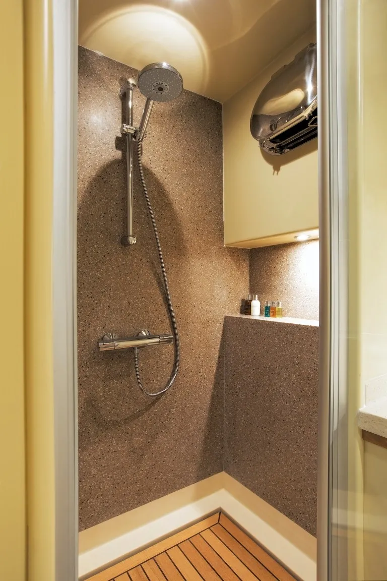 Teknemizde 2 master, 1 double ve 1 twin kabin olmak üzere toplam 4 kabin bulunmakta ve 8 kişilik misafir kapasitesine sahiptir. Her kabinde özel duş, WC, klima, TV ve DVD oynatıcı gibi ihtiyaç duyabileceğiniz tüm donanımlar mevcuttur. Miss B, hem iç hem dış tasarımıyla lüks tekne kiralama deneyimini bir üst seviyeye taşır.