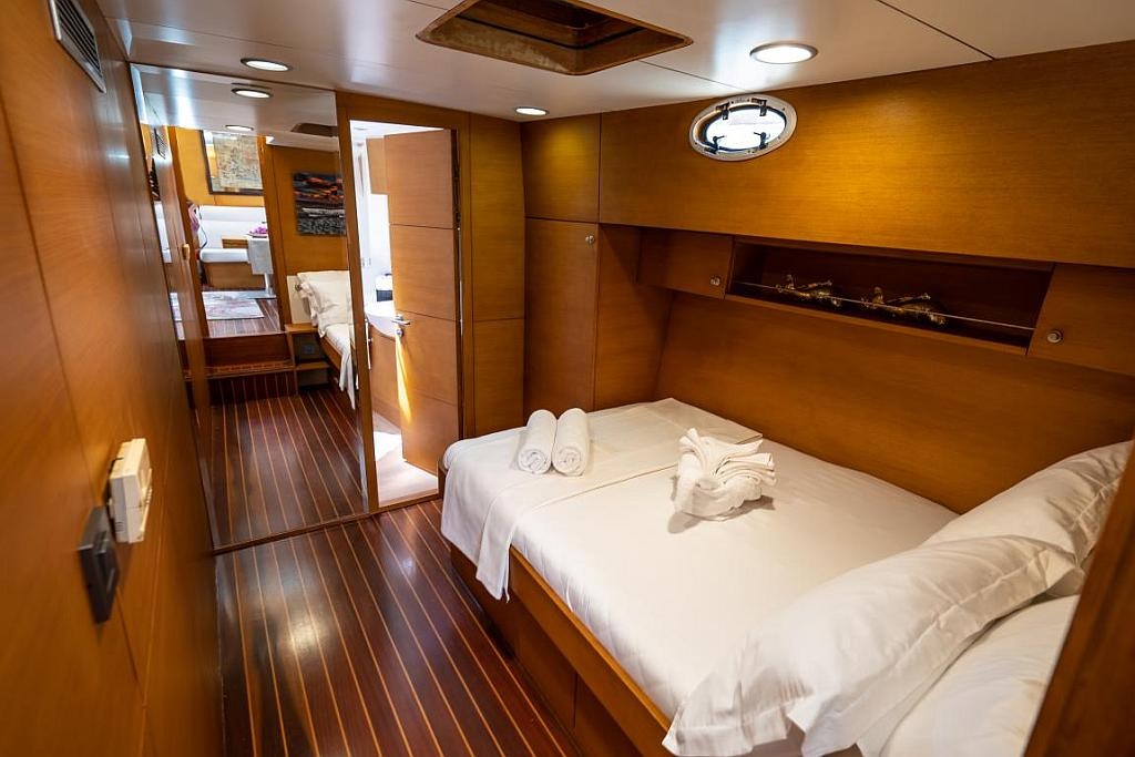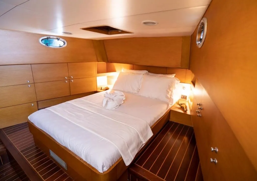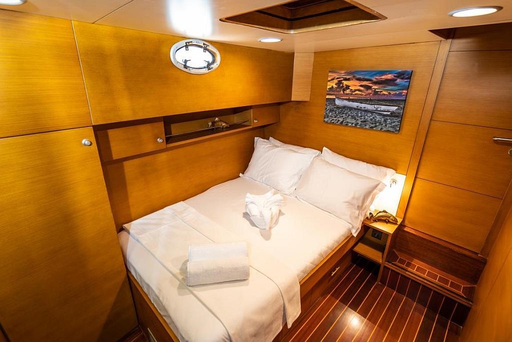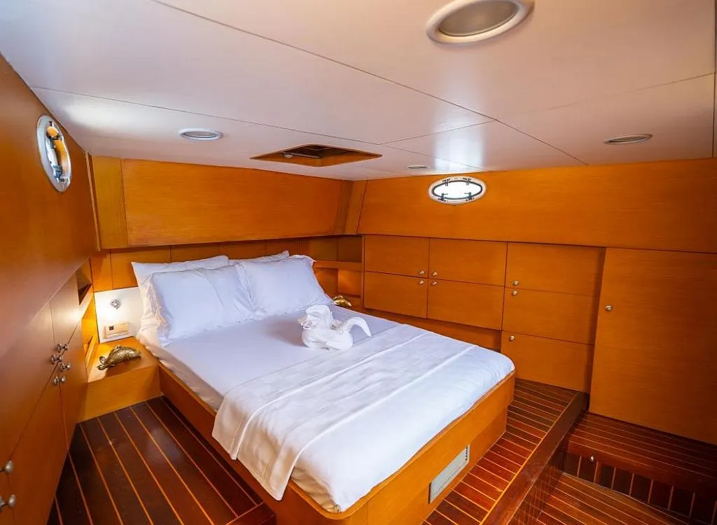 1998 yılında denize indirilen Moe isimli lüks guletimiz, 2005 ve son olarak 2020 yılında kapsamlı yenileme çalışmalarıyla günümüzün modern donanım ve konfor standartlarına uygun hale getirilmiştir. Teknemizde, biri master olmak üzere 3 kabinli konaklama seçeneği bulunmakta olup, tüm kabinler klimalıdır ve toplamda 6 kişiye kadar misafir ağırlayabilmektedir. Guletimizde, her biri denizcilik alanında deneyimli ve güler yüzlü 3 kişilik mürettebat sizlere unutulmaz bir hizmet sunmak üzere hazır bulunmaktadır. 24 metre uzunluğundaki Moe, geniş güvertesi, rahat oturma alanları ve şık iç mekanı ile mavi yolculuk boyunca size konforlu bir tatil deneyimi sunar. Bodrum tekne kiralama seçenekleri arasında yer alan A. Eser, Ege’nin eşsiz koylarını keşfetmek isteyen tatilciler için mükemmel bir tercihtir. Toplamda 3 kabinli tekne olarak tasarlanan teknemiz, hem aileler hem de küçük arkadaş grupları için idealdir. Deneyimli ekibimizle birlikte sunulan mürettebatlı lüks tekne hizmetimiz sayesinde, tatiliniz boyunca sadece keyif almanız yeterlidir. Modern olanaklarla donatılmış, zarif detaylara sahip Moe eşsiz bir deniz tatilinin kapılarını aralıyor.
