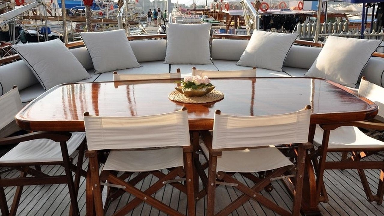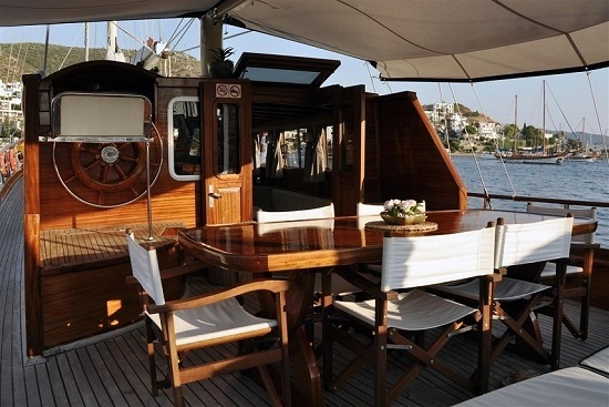 Teknemiz, geniş ön ve arka güverte alanlarına sahip olup, dinlenme alanları, yemek masası ve güneşlenme minderleri ile deniz ve güneşin tadını doyasıya çıkarabileceğiniz konforlu alanlar sunar. Modern seyir ekipmanları ve gerekli tüm teknolojik donanımları ile güvenli bir yolculuk geçirmenizi sağlar.