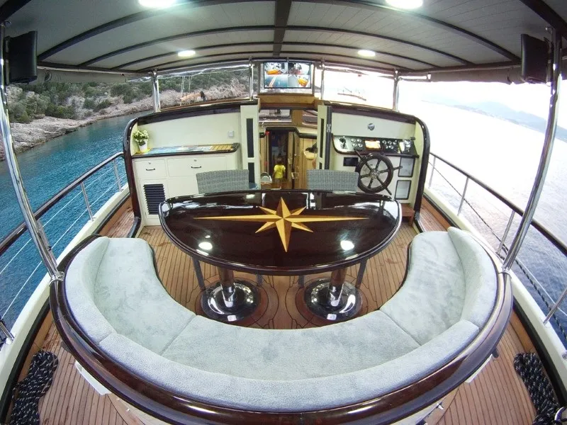 Tüm misafirlerimiz için güneşlenme minderleri, oturma alanları, deniz ve banyo havluları gibi detaylar eksiksiz şekilde sunulmaktadır. Hava ve deniz şartlarının uygun olduğu durumlarda yelken açarak gerçek bir yelkenli gulet deneyimi yaşayabilirsiniz.