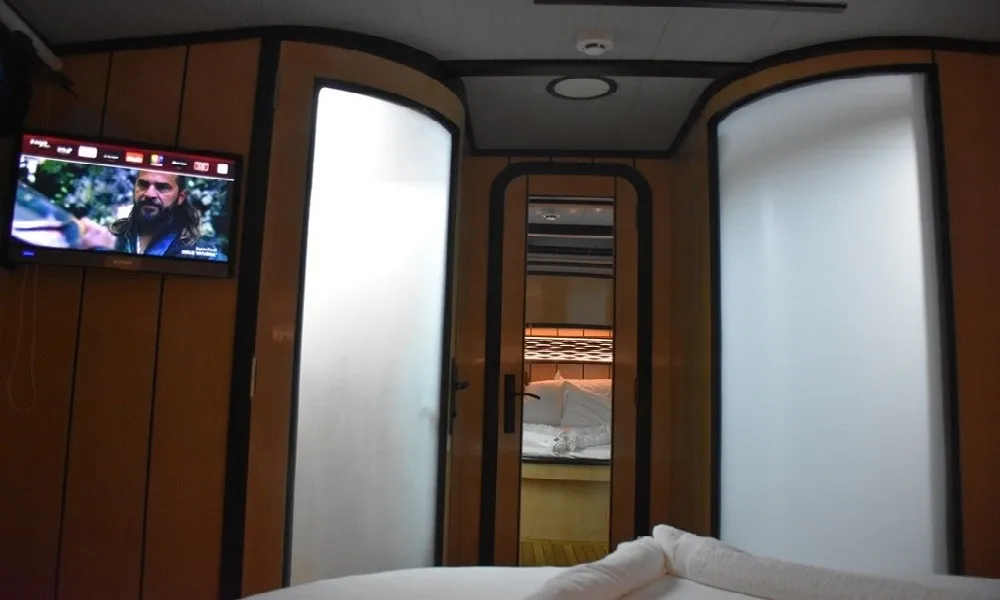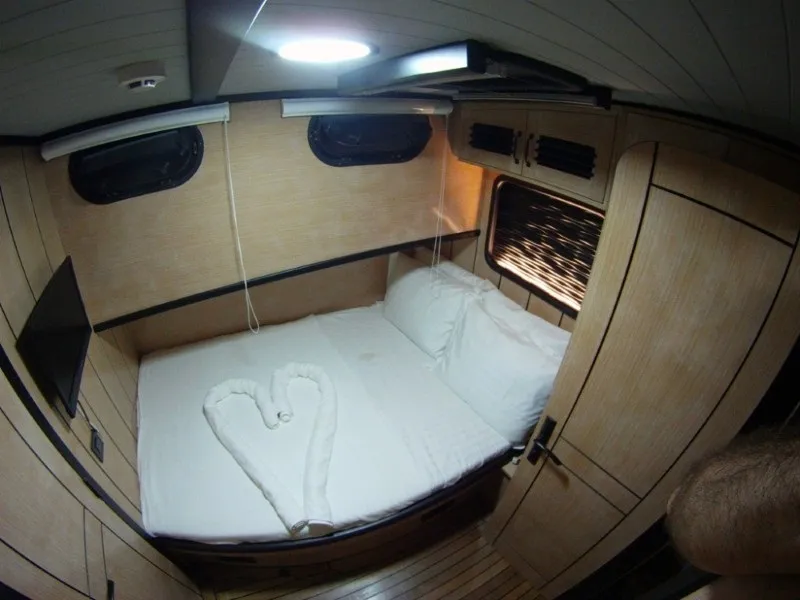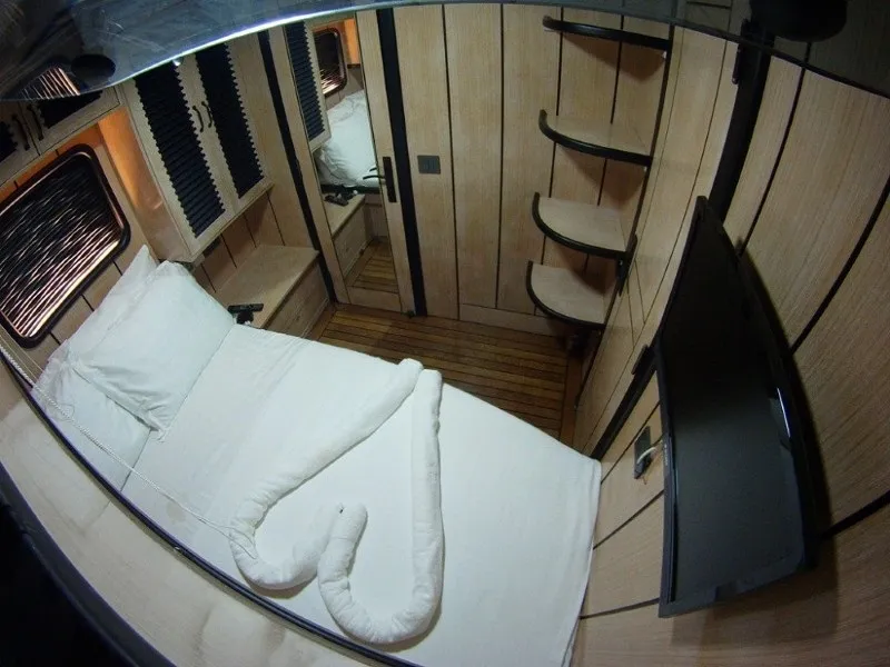 Teknemiz, 1 master ve 1 double olmak üzere toplam 2 kabinli tekne olup, 6 kişiyek kadar konaklama kapasitesine sahiptir. Her kabinde özel banyo, tuvalet ve klima yer almakta, misafirlerimize ev konforunda bir deneyim sunulmaktadır.