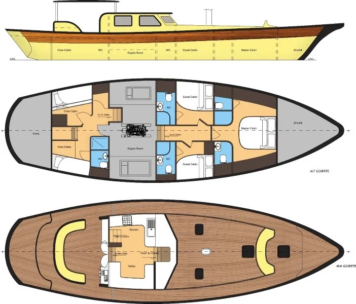 Yelkenli Gulet - 3 Kabinli Tekne - Bodrum Mavi Yolculuk