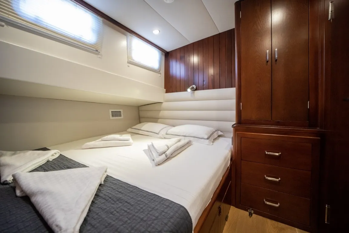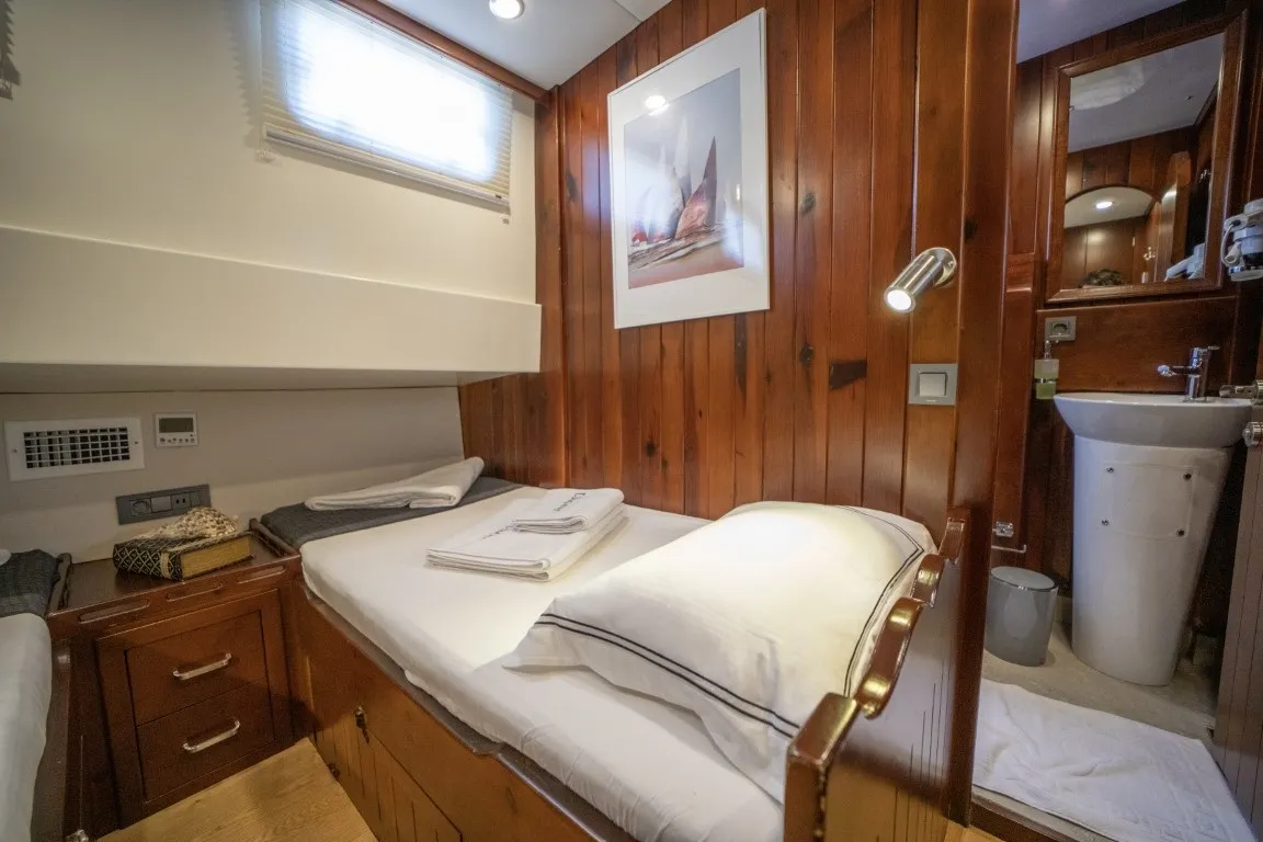 Uluçınar guleti, gulet kiralama Bodrum seçenekleri arasında lüks ve konforu bir araya getiren özel teknelerden biridir. 2022 yılında kapsamlı bir yenileme sürecinden geçerek bugünkü şık ve modern görünümüne kavuşmuştur. 25,5 metre uzunluğunda ve 6,6 metre genişliğindeki gulet, özel tekne turları 2026 sezonunda misafirlerine üst düzey bir mavi yolculuk deneyimi sunmaktadır. 4 double ve 2 twin kabin olmak üzere toplam 6 geniş ve ferah kabine sahip olan teknede, her kabinde klima, özel duşakabin ve wc bulunmaktadır. 12 kişiye kadar misafir ağırlayabilme kapasitesine sahip olan Uluçınar, gün içinde 6-8 saatlik klima kullanımıyla konforlu bir konaklama imkânı sunmaktadır.