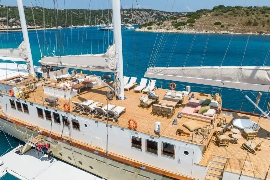 56 metre uzunluğundaki ultra lüks gulet, modern tasarımı, geniş yaşam alanları ve zengin donanımıyla deniz tutkunlarını ağırlıyor. Ultra lüks yat kiralama seçenekleri arasında öne çıkan bu özel yat, hem Türkiye kıyılarında hem de Yunan Adaları yat turlarında hizmet veriyor.