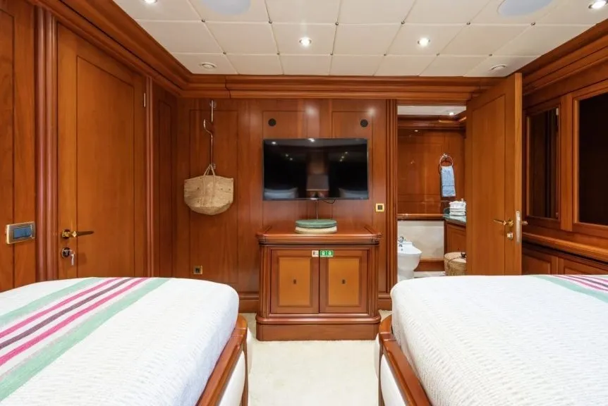 Konforun ön planda olduğu Yazz, 2 master, 2 double ve 1 twin kabini ile 12 misafire kadar konaklama imkanı sağlıyor. 24 saat kesintisiz klima ile her an serin ve ferah bir atmosfer sunan yat, hem aileler hem de arkadaş grupları için ideal bir seçim.