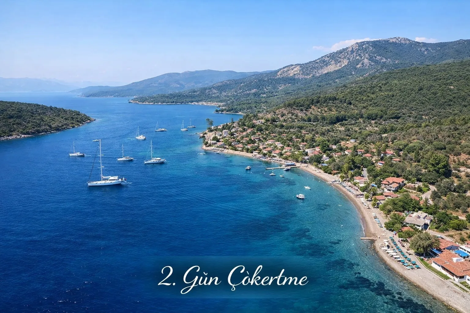 Sabah saatlerinde rotamızı Orak Adası’na çeviriyor, kahvaltımızı Gökova’nın masmavi suları eşliğinde alıyoruz. Adanın cam berraklığındaki denizi, günün ilk saatlerinde unutulmaz bir yüzme molası sunarken, bu anlar mavi tur deneyiminin en keyifli duraklarından biri oluyor. Deniz keyfinin ardından guletimiz, öğle yemeği için Gökova’nın simge noktalarından biri olan Çökertme’ye doğru yol alıyor.