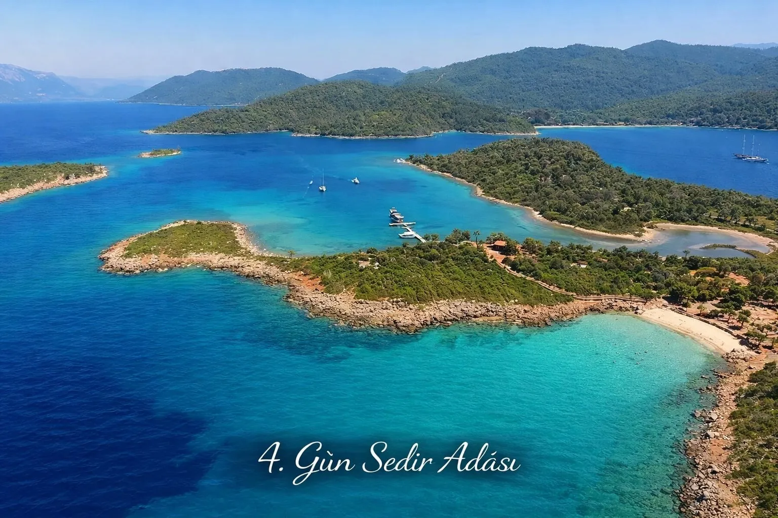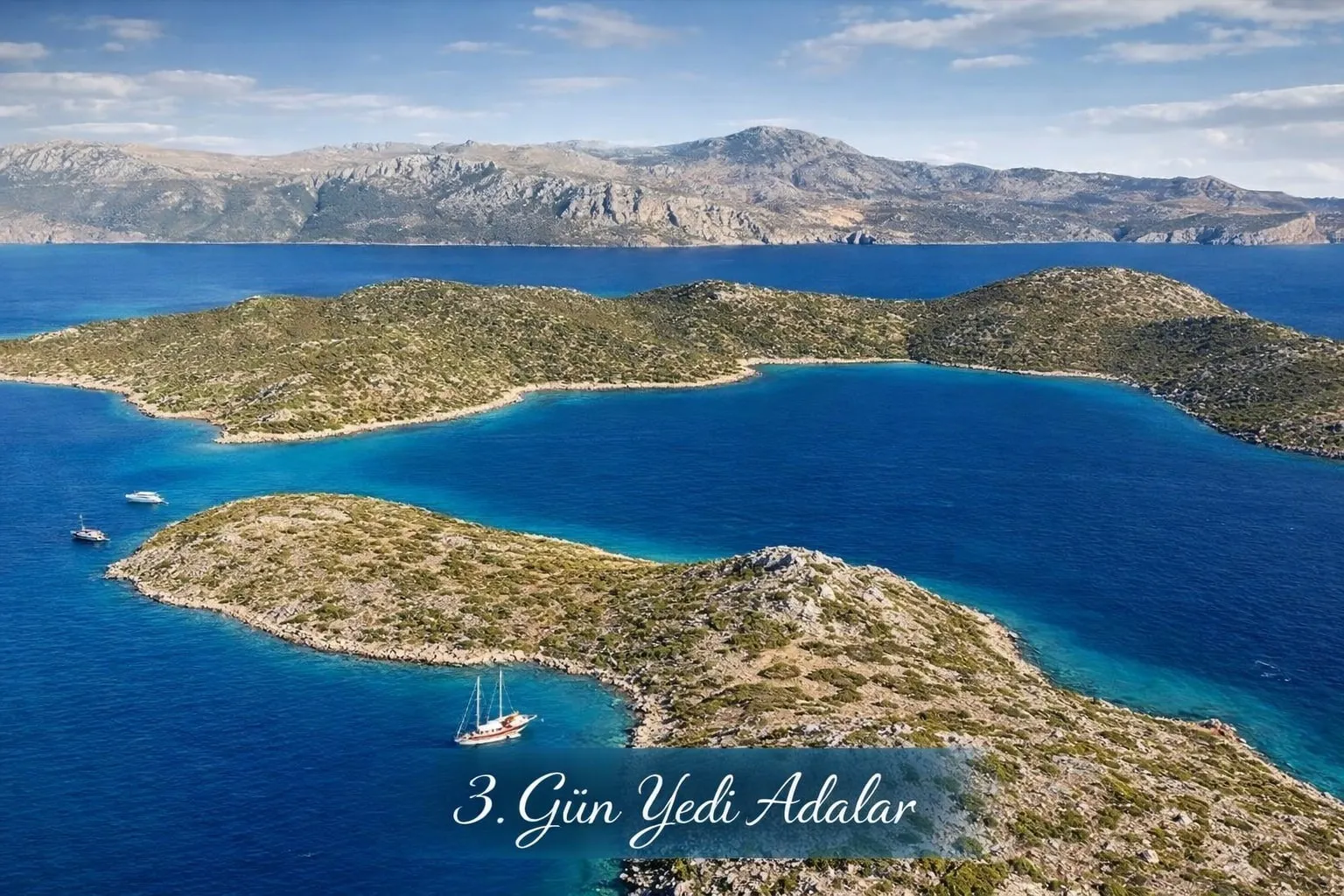 Günün ilk ışıklarıyla birlikte rotamızı Yedi Adalar’a çeviriyor, sakin deniz üzerinde ilerlerken mavi turun huzurlu temposunu hissetmeye başlıyoruz. Yedi Adalar’ın doğal dokusu ve dingin atmosferi, bu özel yolculuğun en etkileyici anlarından bazılarını sunuyor. Keşfin ardından Uzun Liman’a demirliyor, berrak sularda verilen yüzme molası ve teknede alınan öğle yemeğiyle günün keyfini çıkarıyoruz.