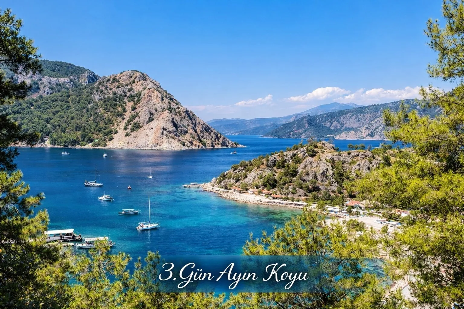Öğleden sonra seyir Ayın Koyu’na doğru devam ediyor. Kalabalıktan uzak, doğayla iç içe bu koyda akşam saatleri yavaşlıyor; gün batımına eşlik eden akşam yemeği ve sessiz bir geceleme sizi bekliyor. Kısa kabin kiralama programı, konforu sayesinde dinlenme ön plandayken, koyun sakinliği bu gulet tatilini unutulmaz kılan detaylardan biri haline geliyor.