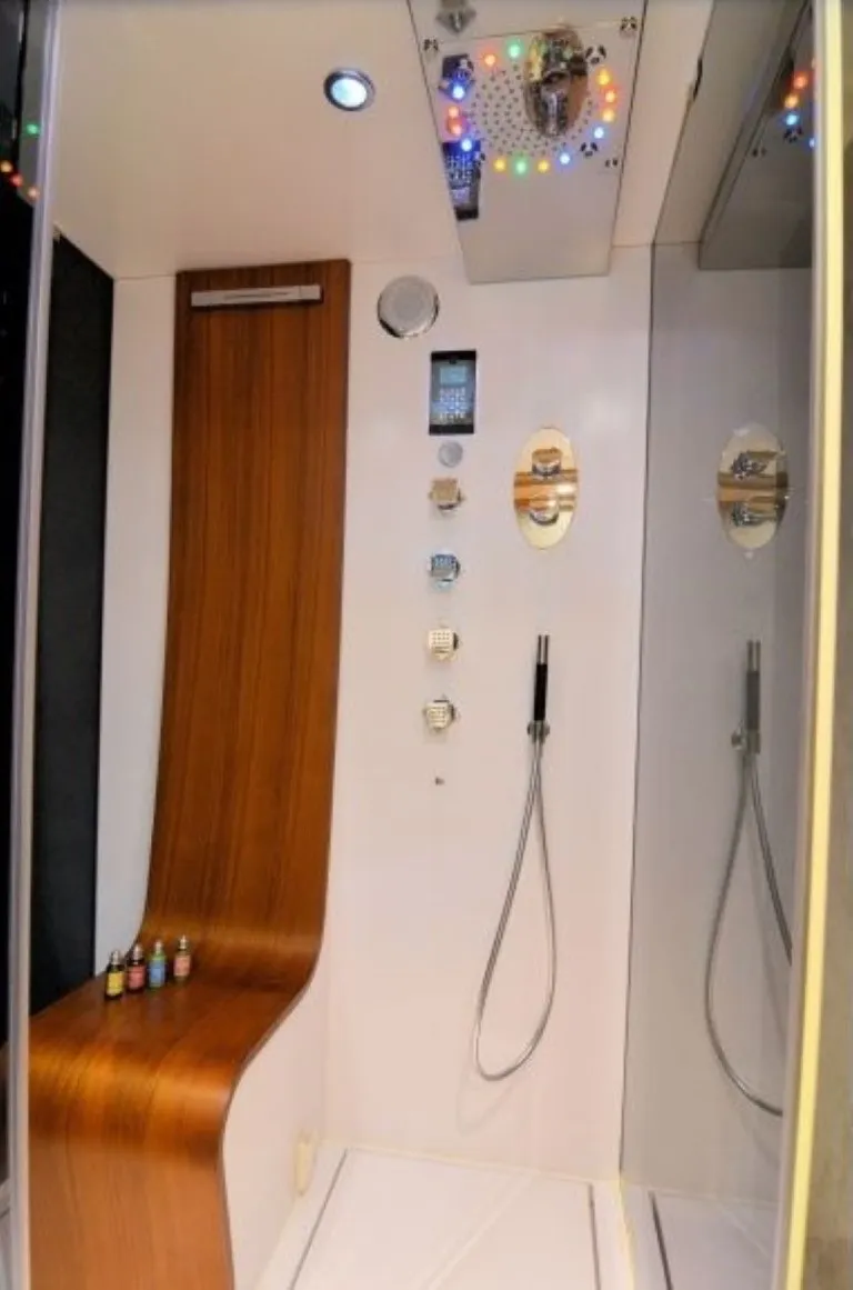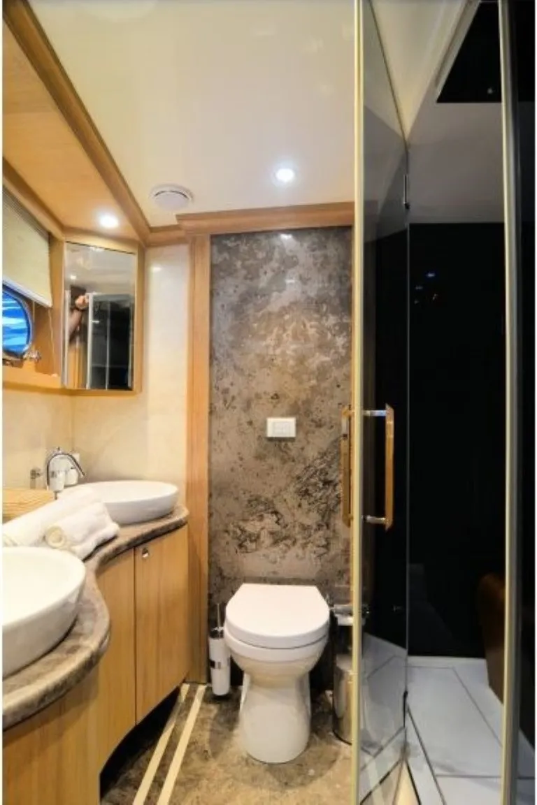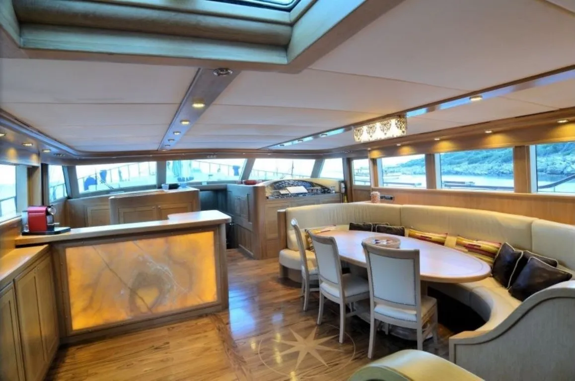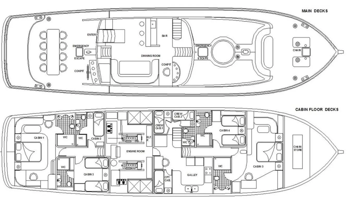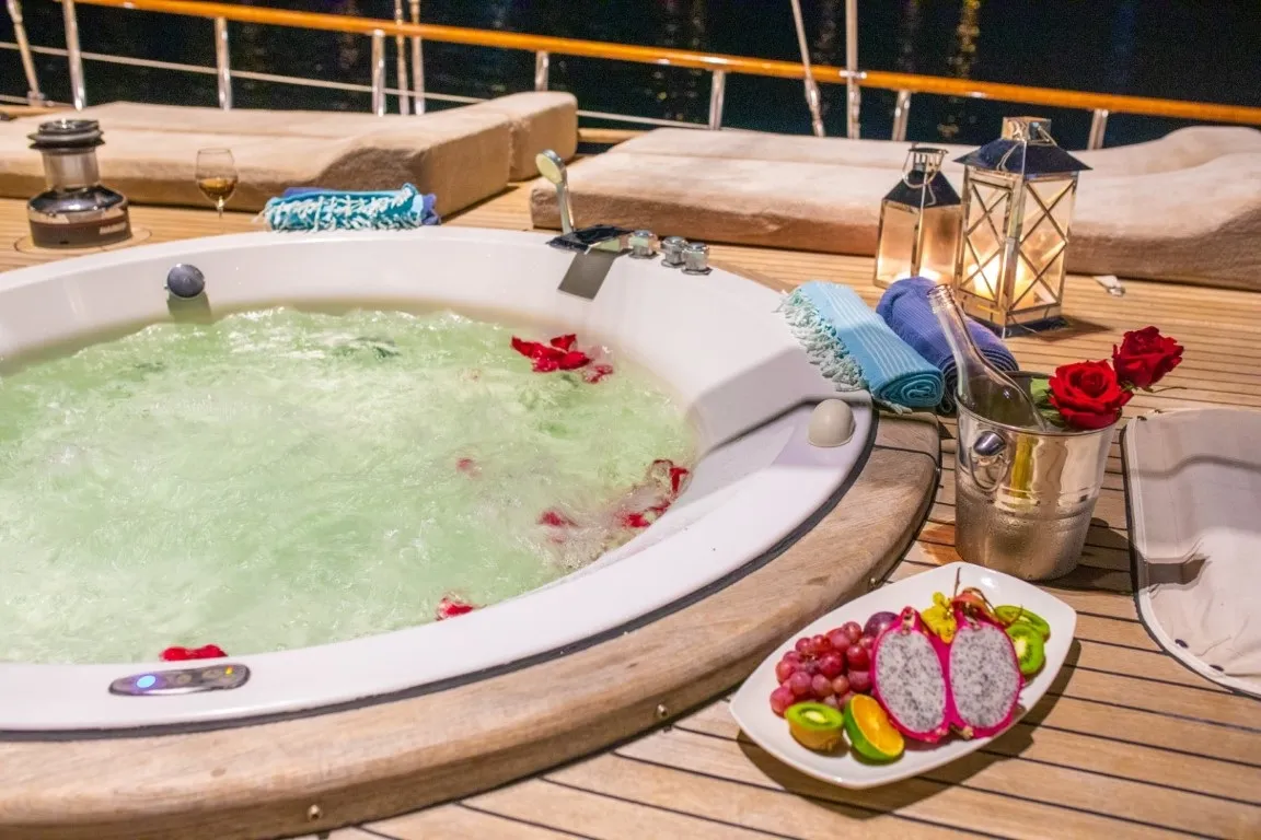 Bodrum Limanı'na bağlı olan ve 5 kabine sahip teknemizde, tüm detaylar klasik ve modern bakış açısı harmanlanarak yüksek kalitede dizayn edilmiştir. 2 master, 2 twin ve 1 single kabini ile 9 misafiri ağırlayabilen teknemizin, tüm kabinlerinde TV, 24 saat hizmet verebilen klima ve ebeveyn banyosu bulunmaktadır. Ayrıca master kabinlerinde jakuzi ve buhar banyosu olan teknemizin, ön güvertesinde de ikinci bir jakuzi mevcuttur.