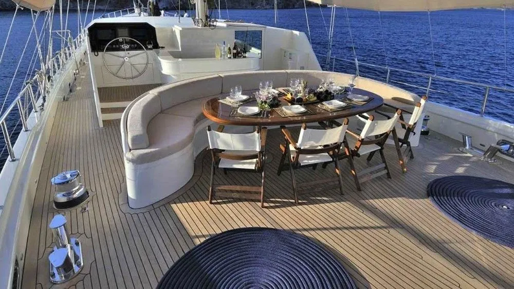 Hava koşullarının uygun olması durumunda yelken seyri yapabileceğiniz teknemiz, güvertesinde yer alan jakuzisiyle denizin eşsiz manzarası eşliğinde rahatlama imkanı sunar. Burada içeceğinizi yudumlayarak tatilinizi daha da keyifli hale getirebilirsiniz.