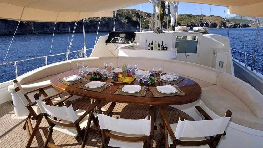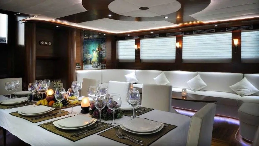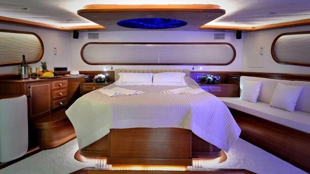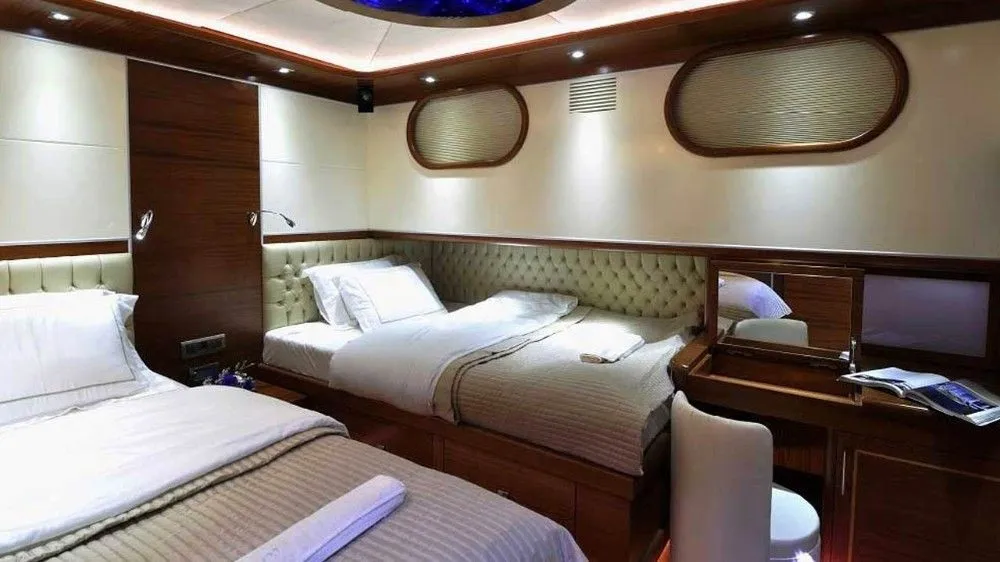 Delüks plus kategorisinde yer alan, 36 metre uzunluğundaki motorsailer tipi teknemiz, mavi yolculuğunuzu benzersiz bir deneyime dönüştürmek için tasarlanmıştır. 12 kişilik kapasiteye sahip olan teknemiz, 6 konforlu kabiniyle misafirlerine lüks ve rahatlığı bir arada sunmaktadır.