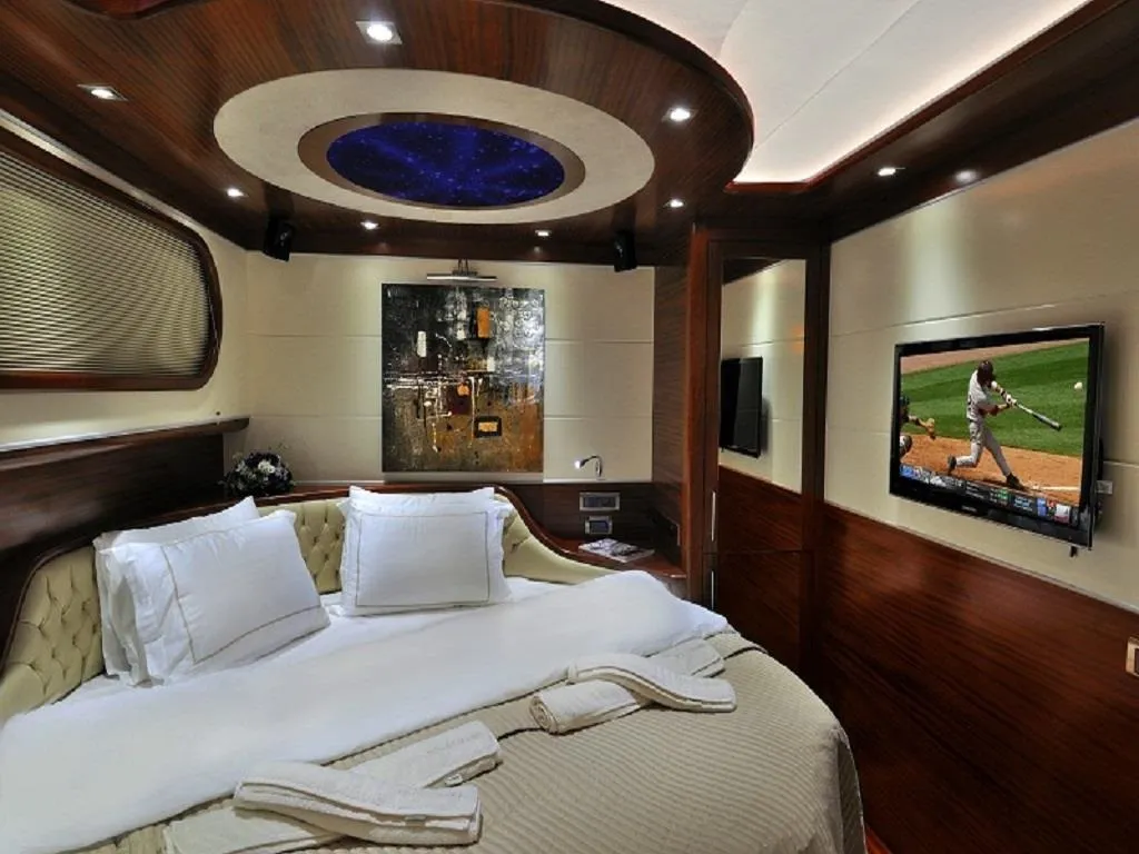 Teknemizde, 2 master, 2 double ve 2 triple kabin yer almaktadır. Tüm kabinlerde klima, güvenlik kasası, led TV, uydu kanalları, dvd oynatıcı bulunmaktadır. Tüm kabinlerde duşakabin yer alırken, ön güvertede bulunan jakuzi, tatilinize ayrı bir keyif katmaktadır.