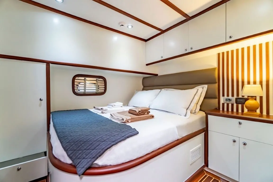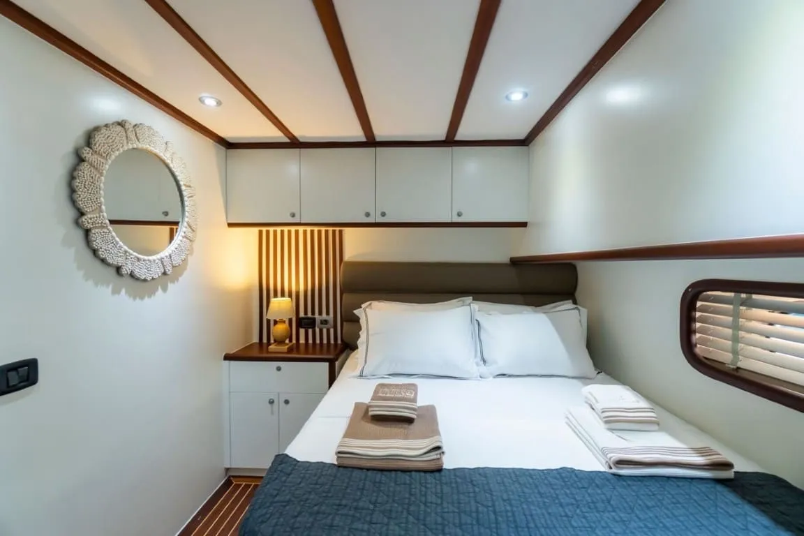 Deneyimli 4 kişilik mürettebat, misafirlere tüm tatil boyunca profesyonel hizmet sunar. Yemekler, temizlik, rota planlaması ve konuk memnuniyeti mürettebatın önceliğidir.