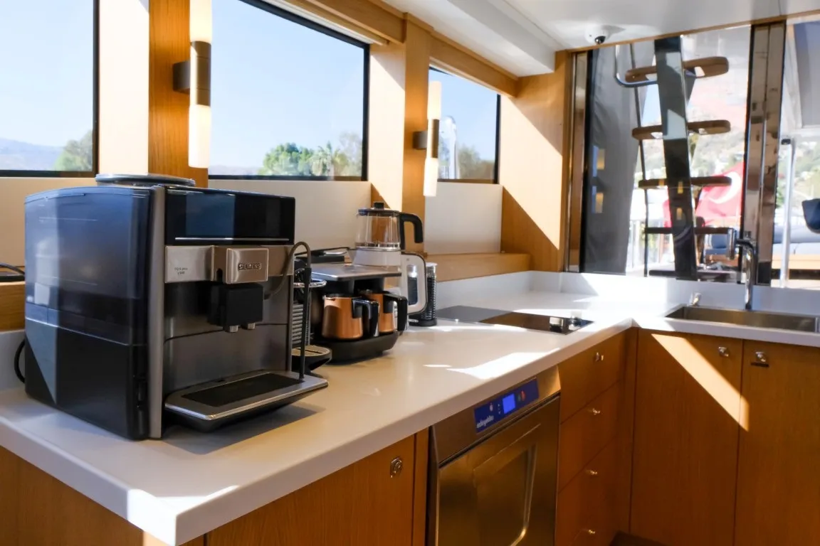 Teknede tüm gün kullanılabilen klima sistemi sayesinde, günün her saatinde serin ve konforlu bir ortamda vakit geçirebilirsiniz. Buz makinesi, kahve makinesi, saç kurutma makinesi gibi günlük ihtiyaçları karşılayan ekipmanlar da mevcuttur. İnternet bağlantısı ise Türk karasularında aktif olarak sunulmaktadır.
