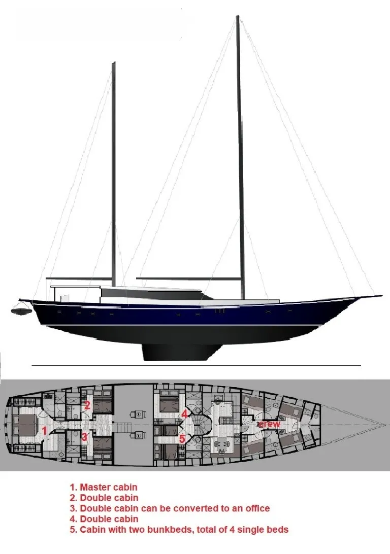 | Kabin Dağılımları | 1 Master, 3 Double, 1 Quad |