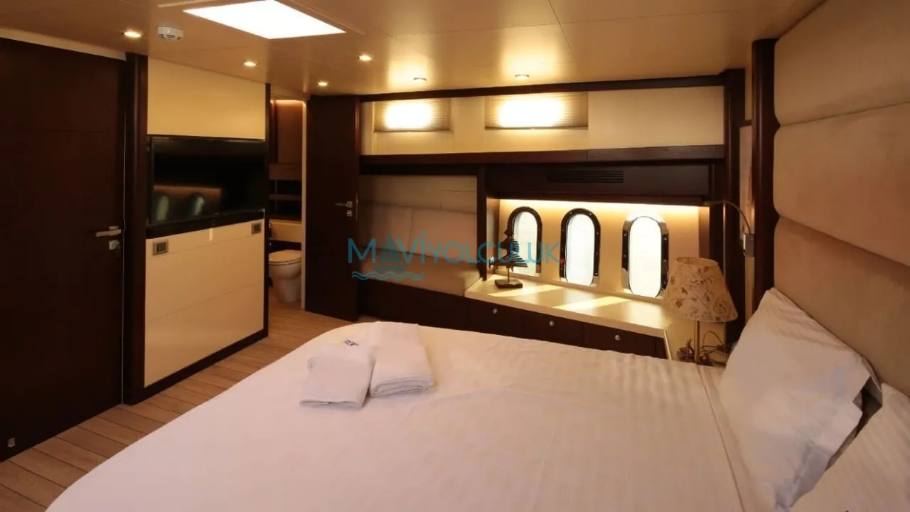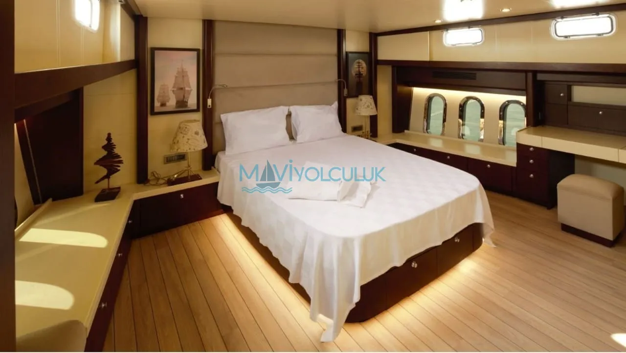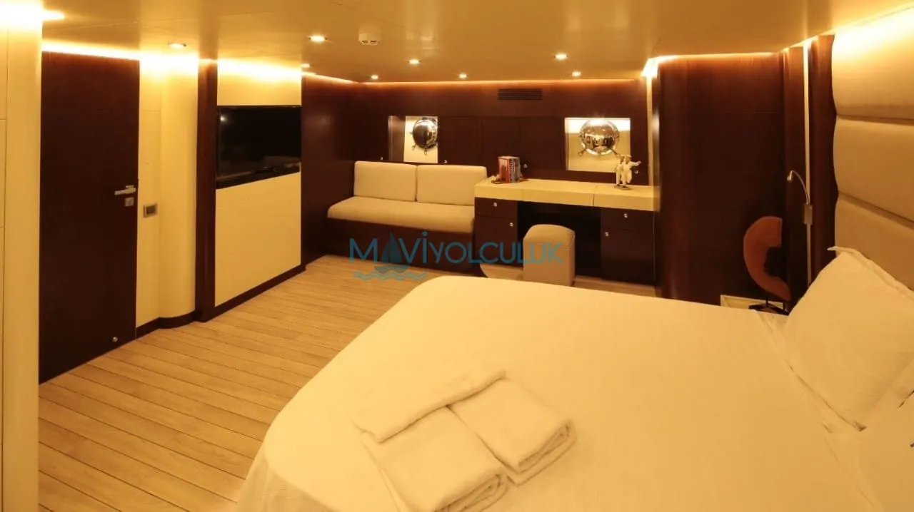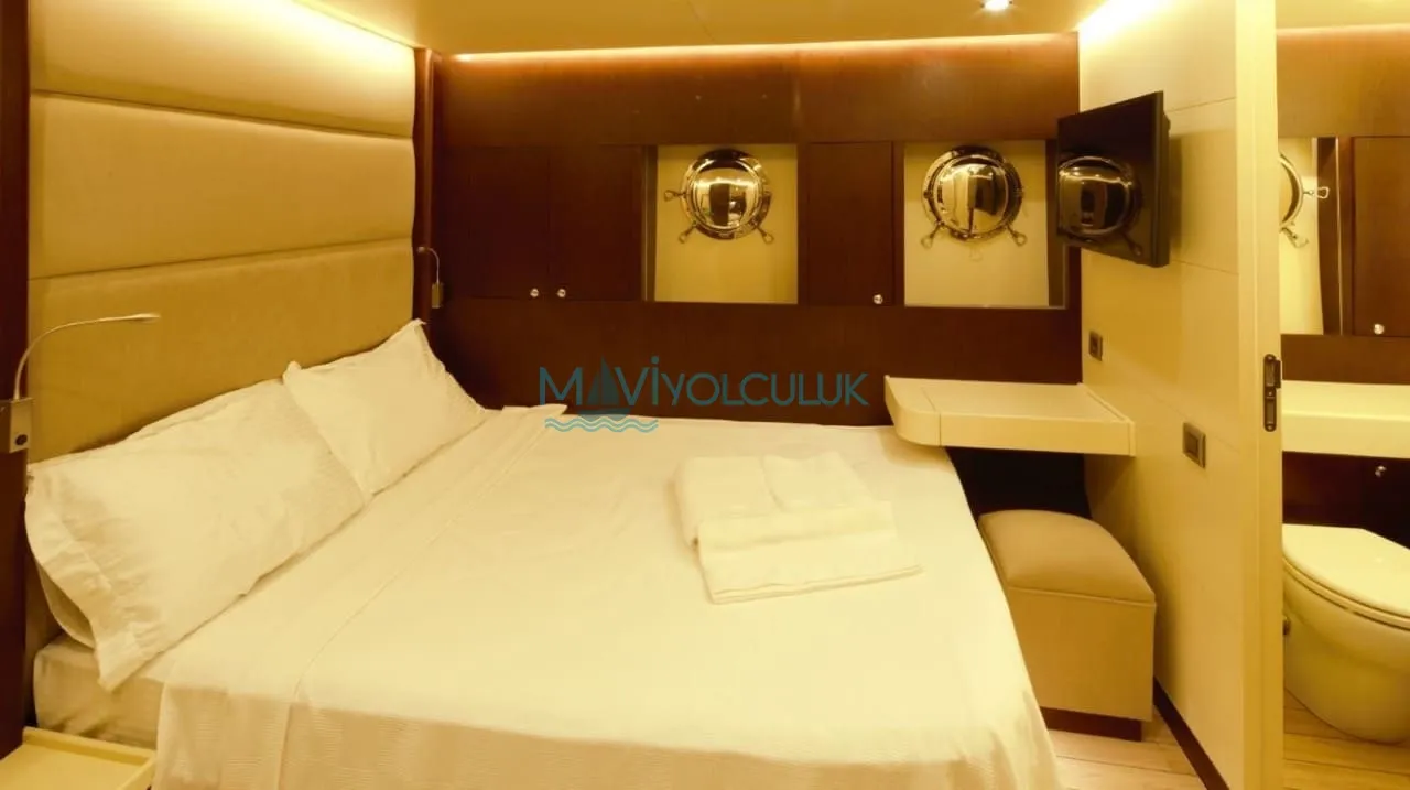 Yatımız 30,6 metre uzunluğa, 7 metre genişliğe sahiptir. Her biri 610 beygir gücüne sahip 2 ana makinası ve 27 kilovatlık 2 jenaratörü bulunmaktadır. Azami seyir hızı 14 knota kadar çıkabilen kiralık yatımız, yaşam alanlarının genişliği ile de misafirlerimizden haklı beğeni almaktaktadır.
