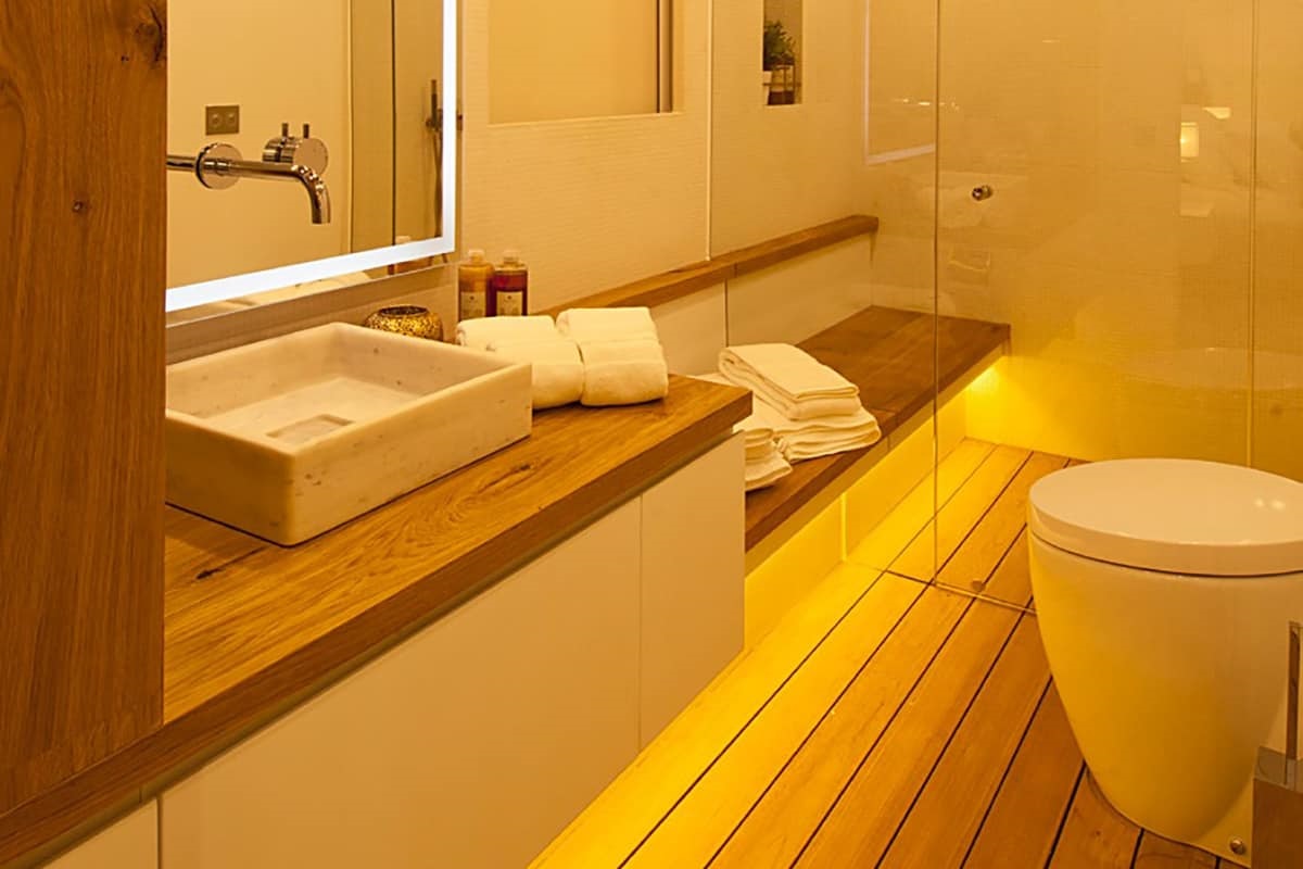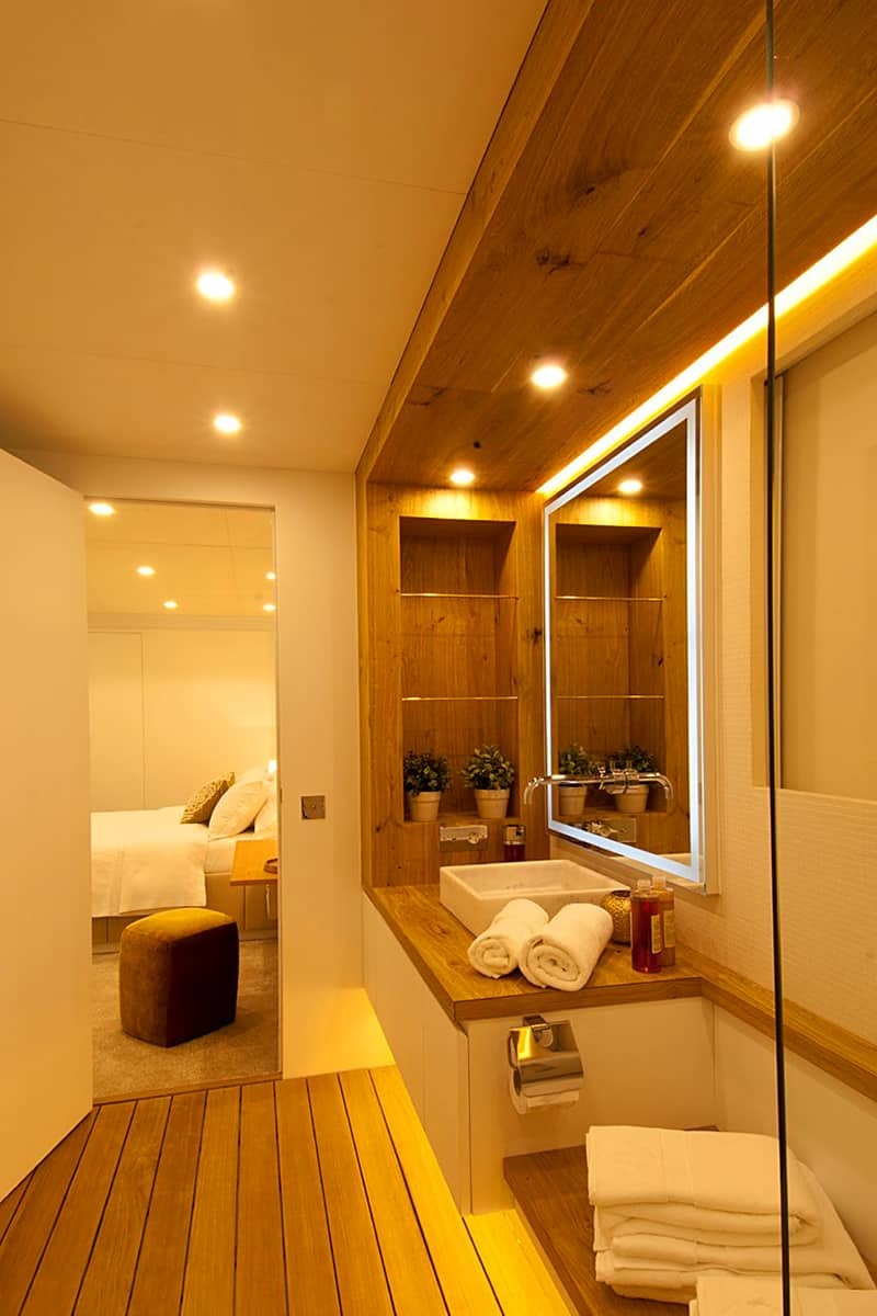 VIP yatımızın yaşam alanlarındaki tüm elektronik donanımı telefon ile yönetilebilmekte ve misafire göre özelleştirilebilmektedir.